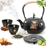 CZAJNIK 0.8L ŻELIWNY 2x CZARKI PODKŁADKA IMBRYK Z SITKIEM DO ZIÓŁ HERBATY