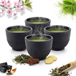 FILIŻANKI CZARKI ŻELIWNE ZESTAW DLA 4 OSOB DO HERBATY I ZIÓŁ 100 ml CZARNE
