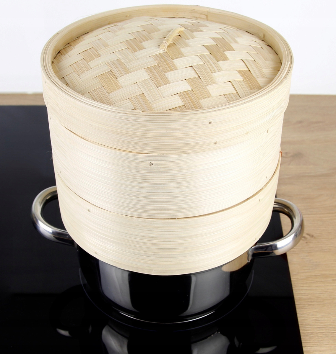 UWAGA przedmiotem oferty są 2 bambusowe wkłady z pokrywka do gotowania na parze BEZ GARNKA.