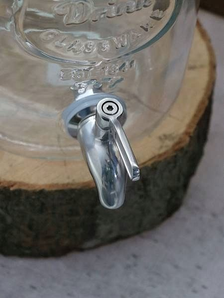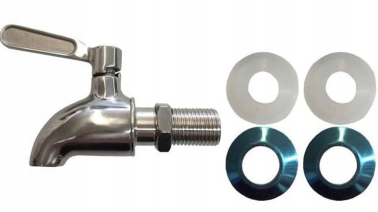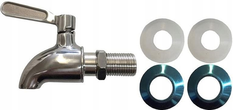 Solidny kranik do słoja i karafki wykonany ze stali + zestaw uszczelek montażowych.