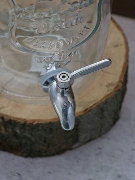 Solidny kranik do słoja i karafki wykonany ze stali.