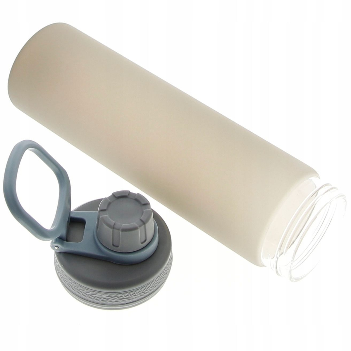 Pomysłowe połączeniu szklanej butelki, bidonu z silikonową antypoślizgową warstwą.