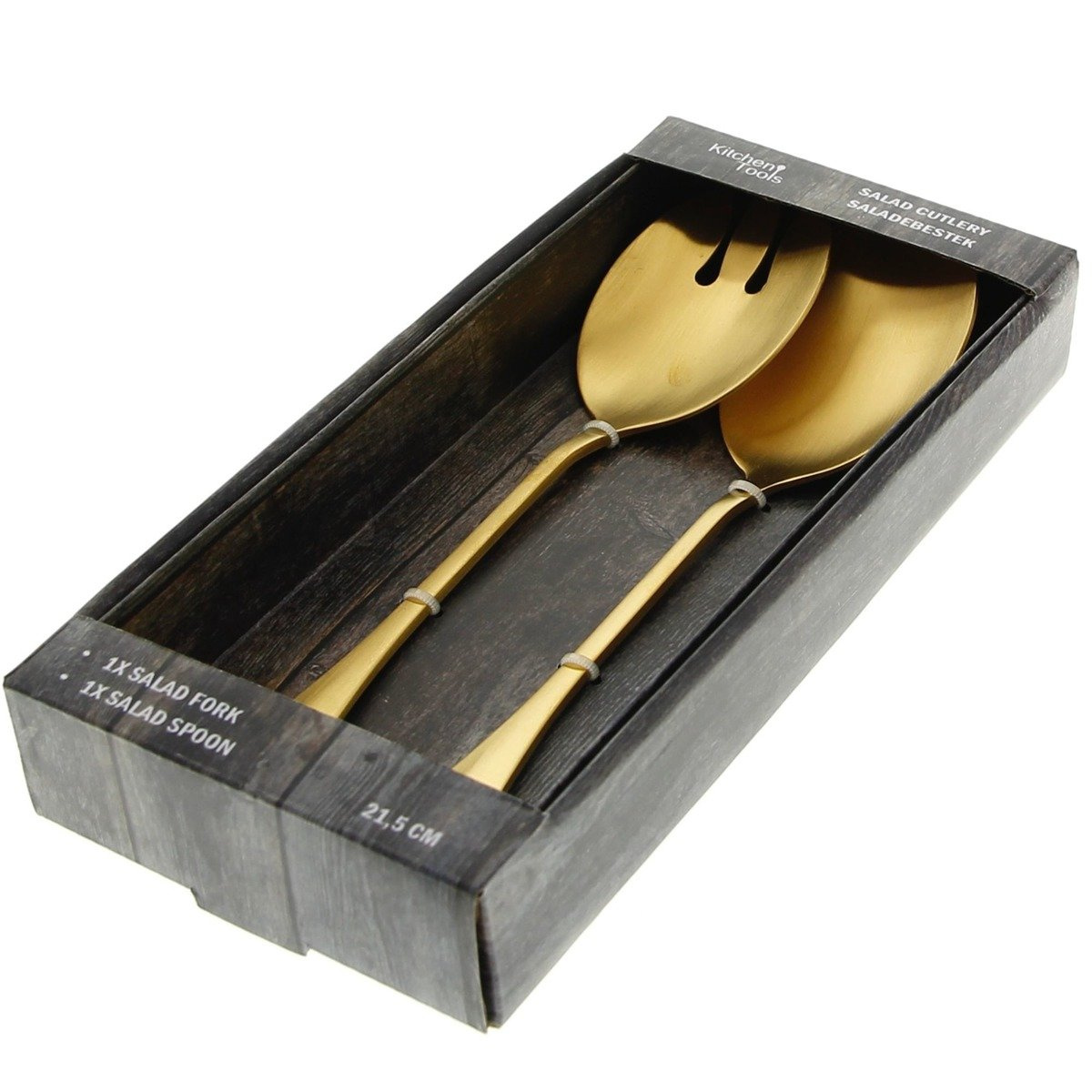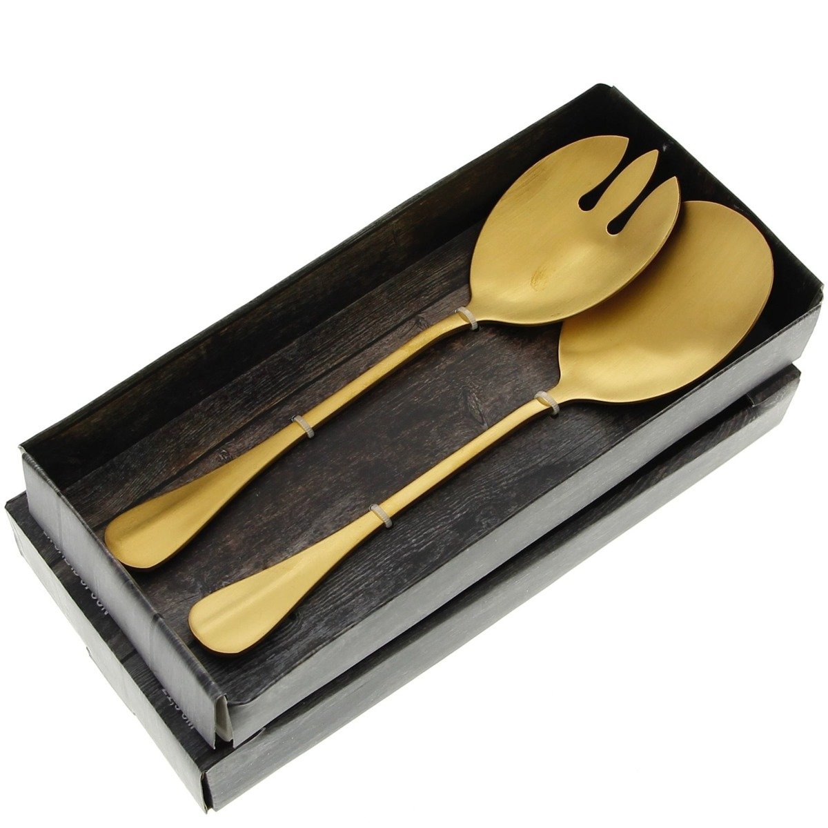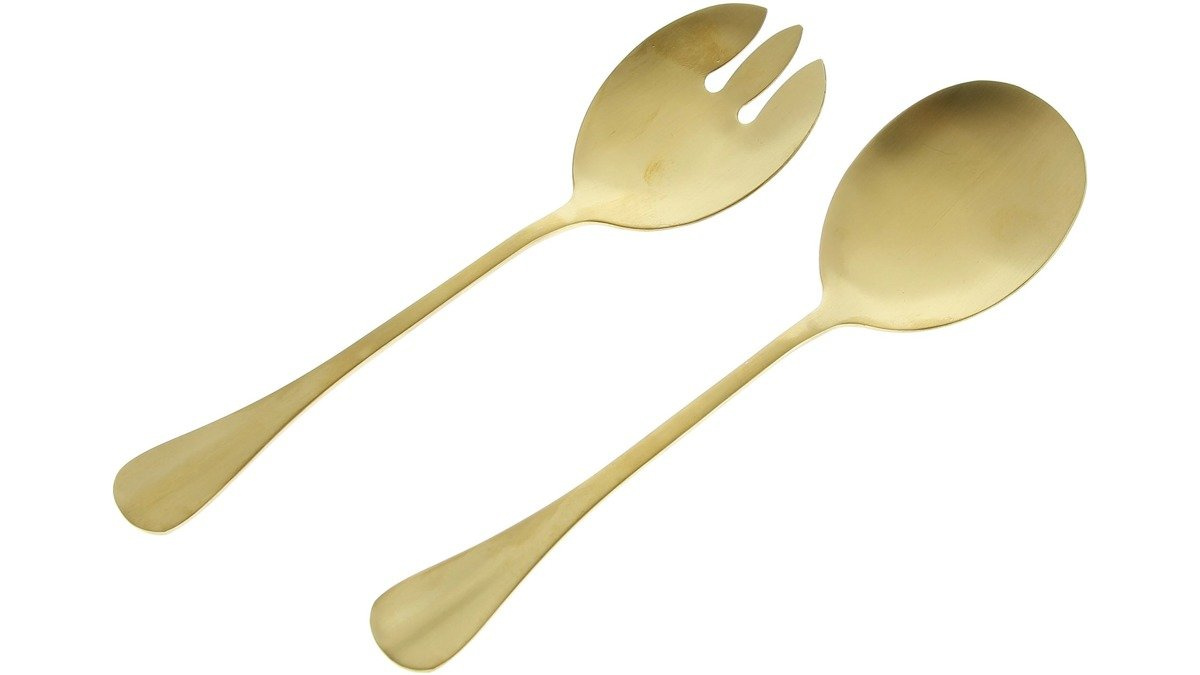Komplet sztućców pokryty powłoką w kolorze złota składający się z 2 elementów.