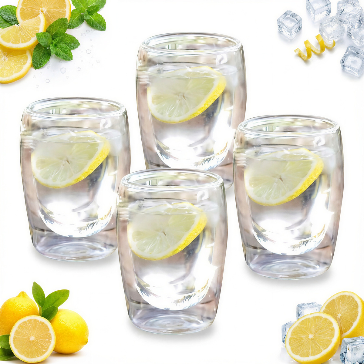 FILIŻANKI SZKLANKI TERMICZNE PRZEZROCZYSTE 4 szt.