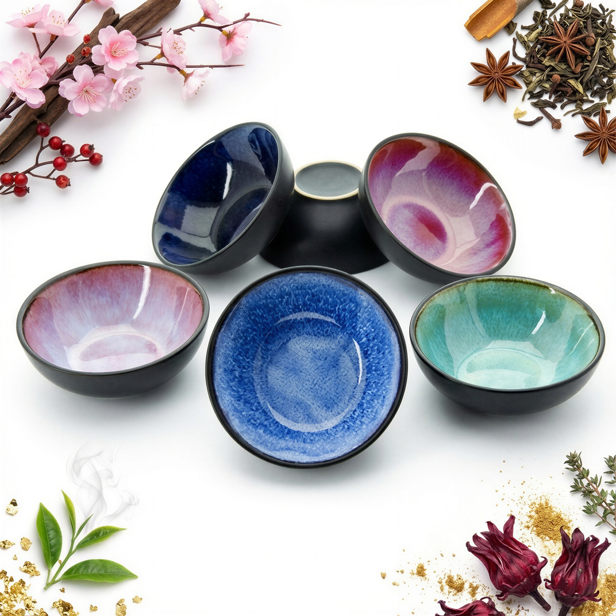 Zestaw misek wykonany z ceramiki, którą można myć w zmywarce do naczyń tylko w krótkich programach myjących.