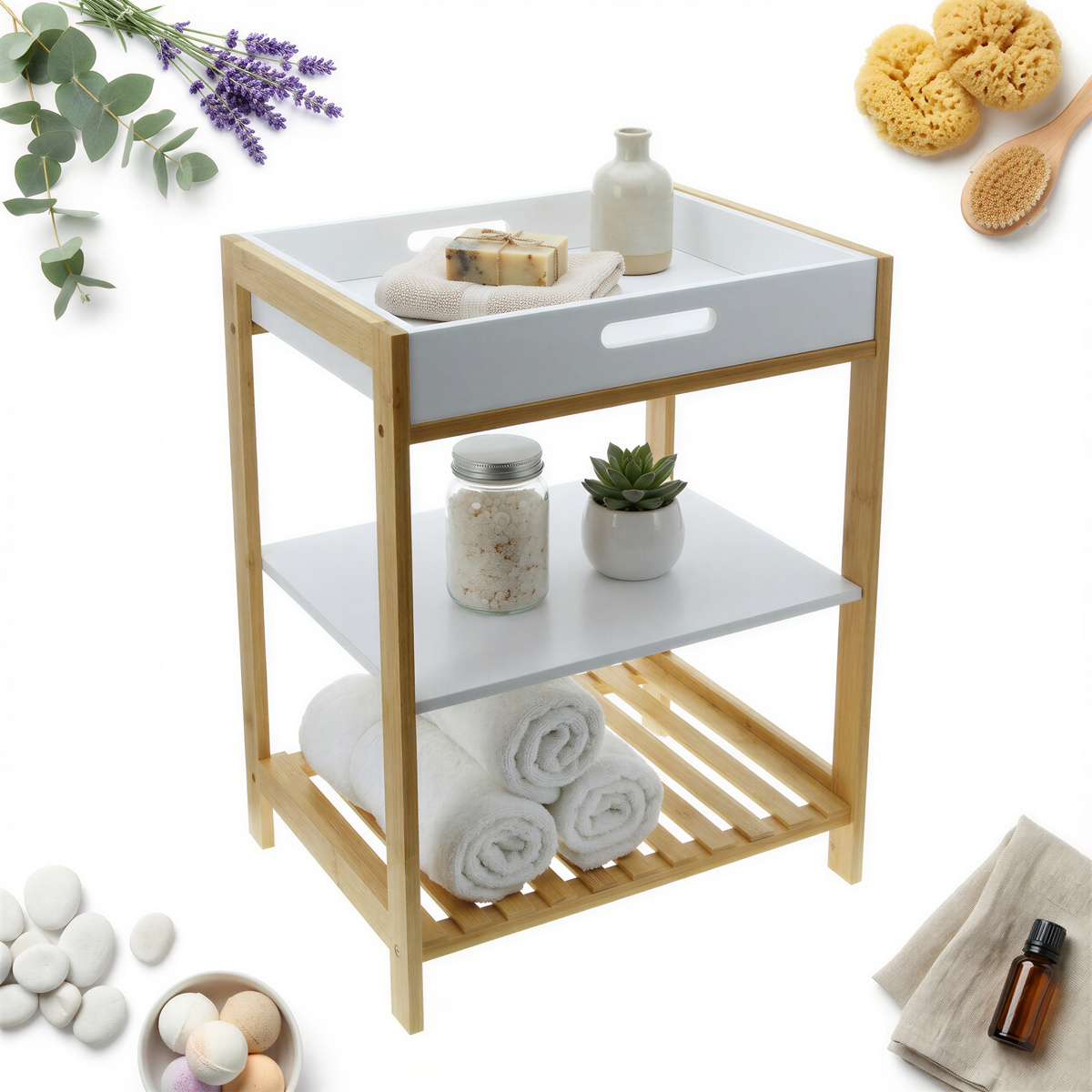 REGAŁ PÓŁKA BAMBUSOWA SZAFKA ŁAZIENKOWA 50x40x30cm