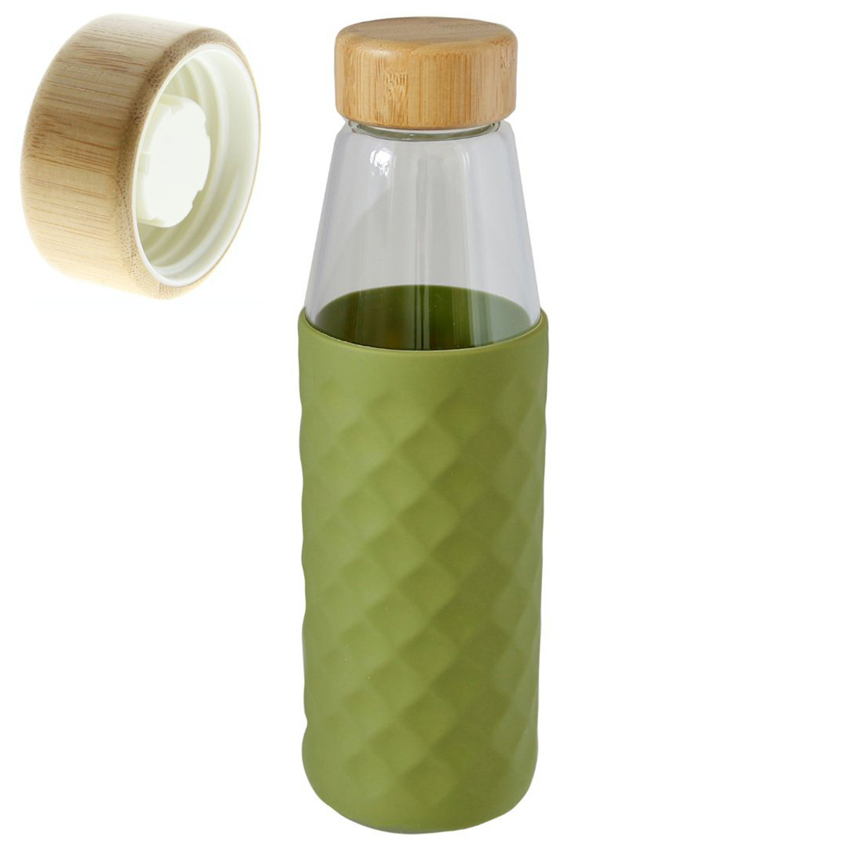 Bambusowa zakrętka wyposażona jest w uszczelkę dzięki czemu bidon jest szczelny.
