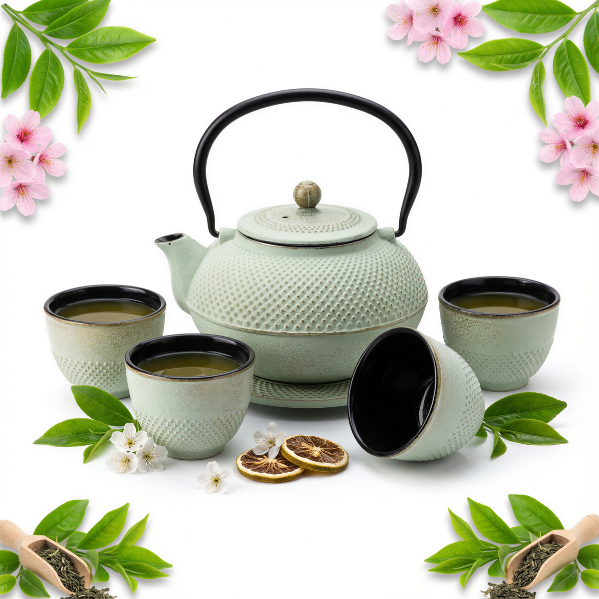CZAJNIK 1,5L ŻELIWNY 4x CZARKI PODKŁADKA ZESTAW