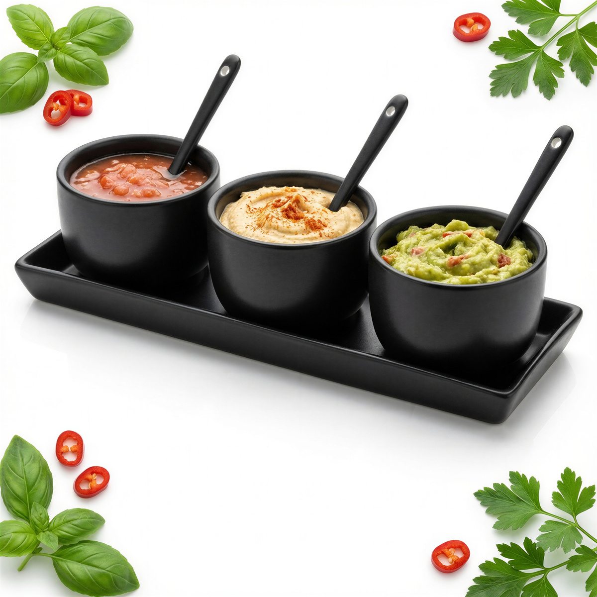 ✅ Do serwowania różnych produktów – sprawdzą się podczas domówek jako pojemniki na przekąski i sosy oraz na co dzień do przechowywania soli i cukru.