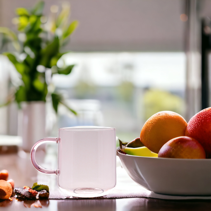 SZKLANKA SZKLANA KUBEK DO KAWY I HERBATY 310 ml. 8,7 cm RÓŻOWA
