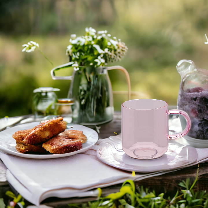 PUDROWY RÓŻOWY SZKLANY KUBEK SZKLANKA DO KAWY I HERBATY 310 ml.