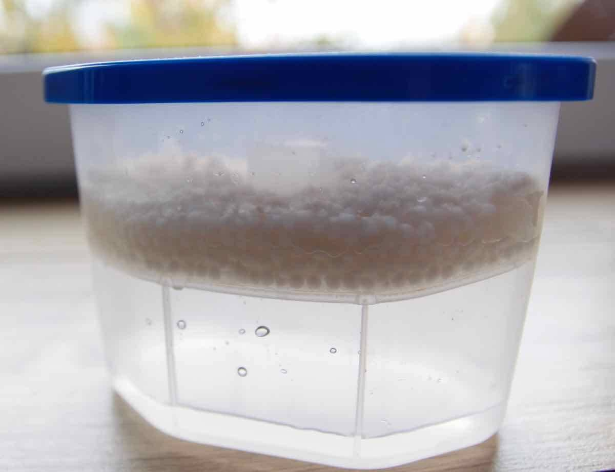 Pochłaniacz pochłania wilgoć, która następnie zbierana jest do pojemnczka.