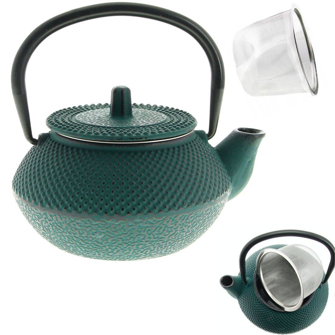 ➡️Czajnik żeliwny z zaparzaczem ze stali nierdzewnej.