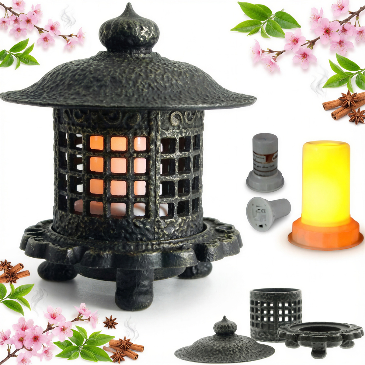 KOMINEK LED LAMPION LATARNIA ŻELIWNA LAMPA 3D Z OGNIEM RUCHOMYM PŁOMIEŃ