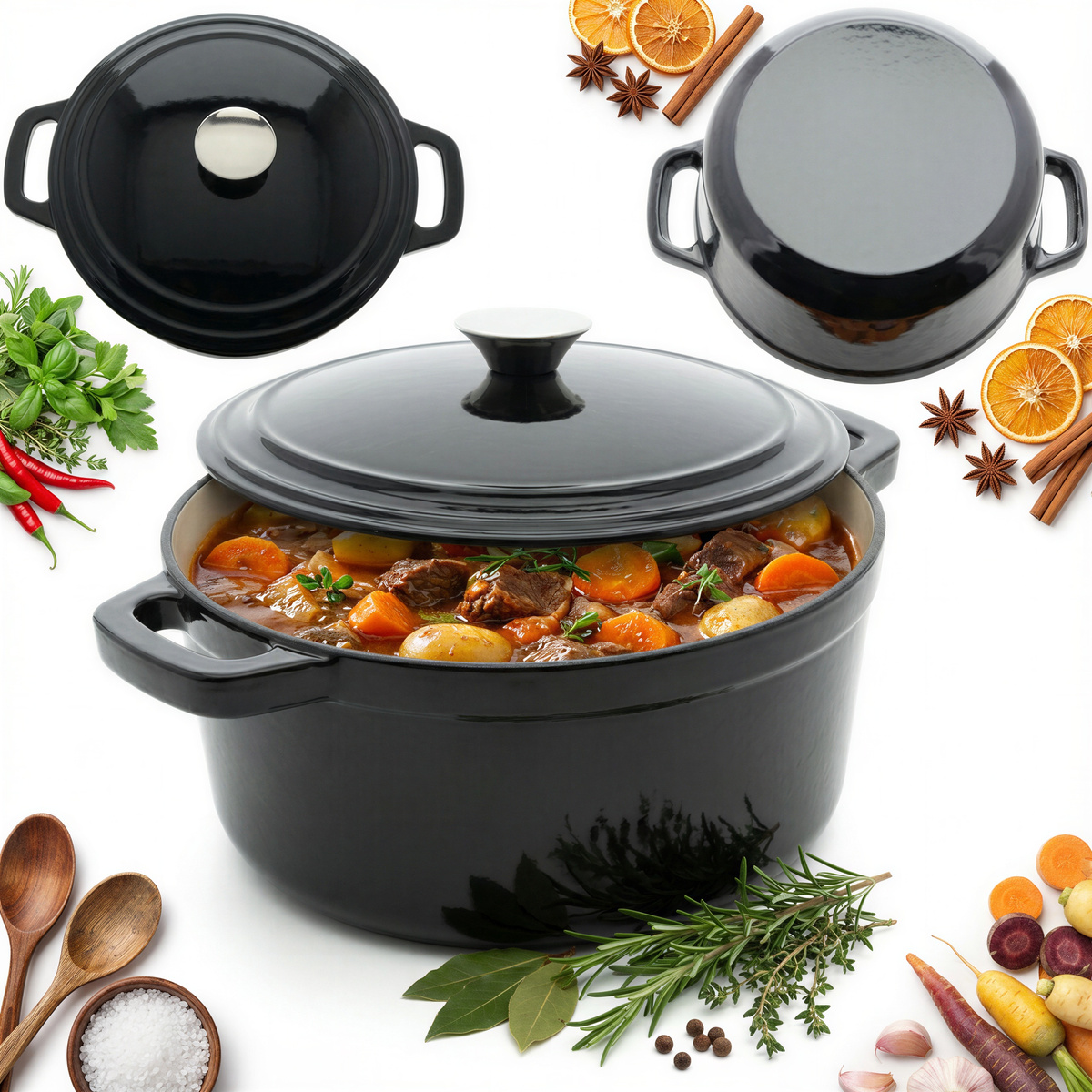 Żeliwny emaliowany Garnuszek utrzymuje potrawy dłużej ciepłe dzięki doskonałej izolacji termicznej, a jego stylowy design sprawia, że staje się on wyjątkowym elementem każdego stołu.