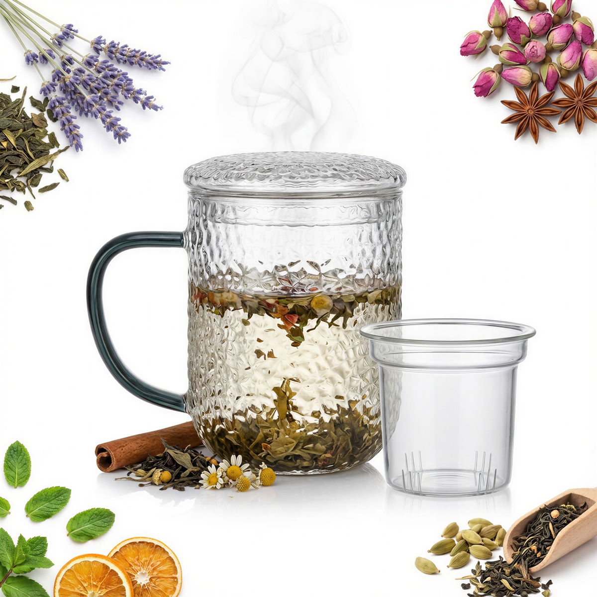 Bezbarwny szklany dekielek na herbatę, tworzy niesamowity efekt i klimat.