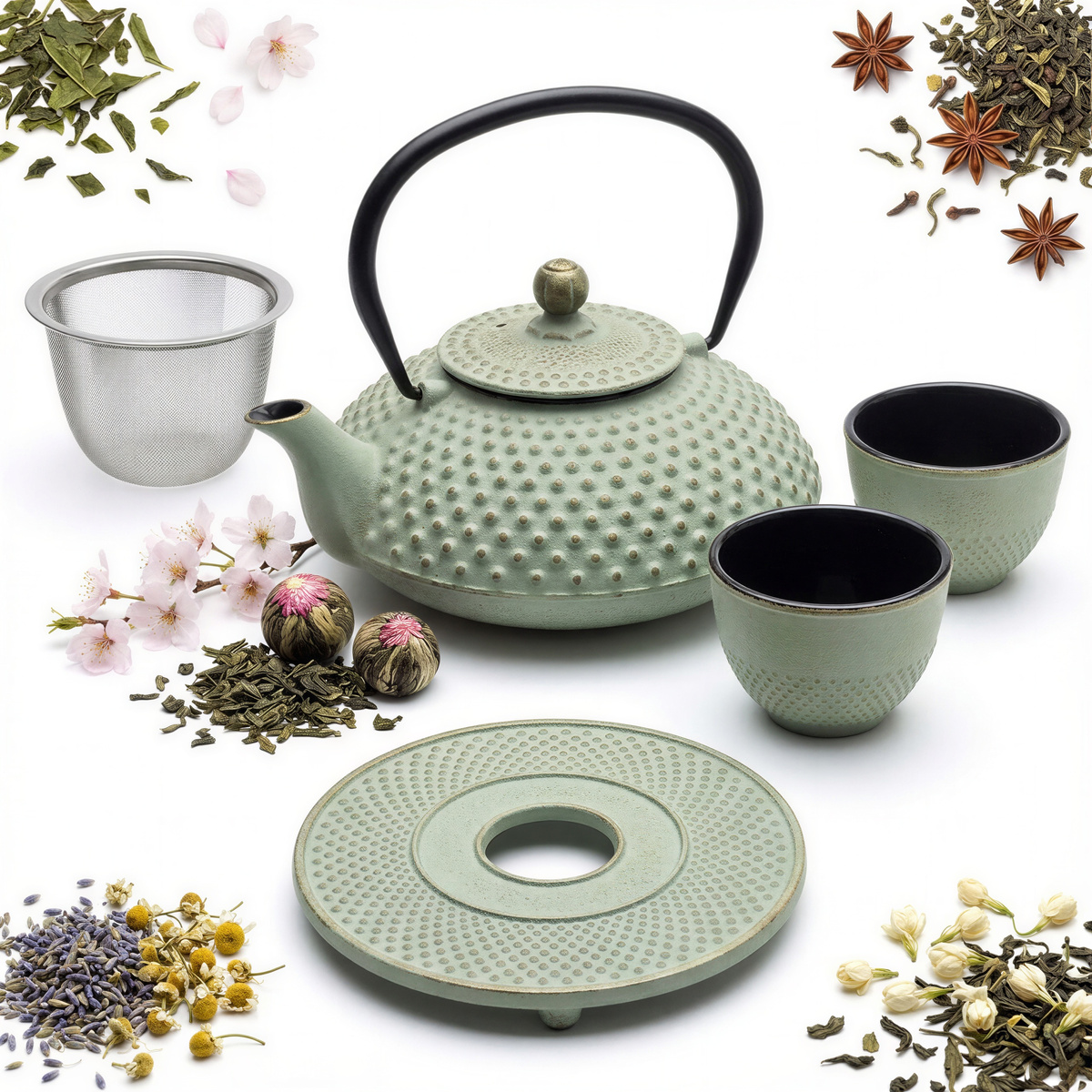 ❤️Oto dla Ciebie zestaw, który sprawi, że Twoja herbata będzie smakować jeszcze lepiej! Znajdziesz w nim żeliwny czajnik o pojemności 1,25L litra oraz 2 czarki żeliwne o pojemności 100 ml. Teraz możesz cieszyć się gorącą herbatą lub zaparzyć ulubione zioła w jednym miejscu.
