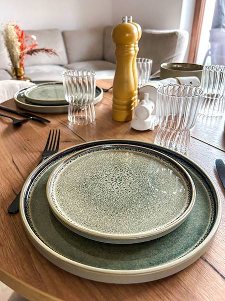 Pokażemy Ci talerze, które są tak piękne, że nawet zupa będzie się na nich uśmiechać! Nasz serwis obiadowy w kolorach szaro-ciemno-popielatych delikatnie cieniowany od wewnątrz — a do tego z lekką nutką zieleni. Ręcznie wykonany z miłością i odrobiną szaleństwa!