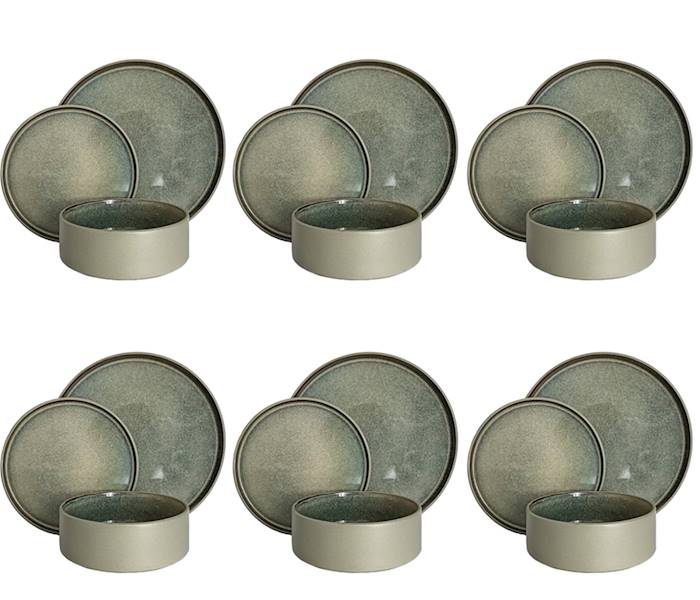 SERWIS OBIADOWY ŚNIADANIOWY 18el ZESTAW TALERZY DLA 6 OSÓB STACK GREY