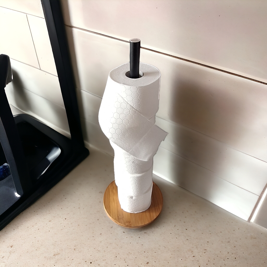 UCHWYT NA PAPIER TOALETOWY STOJĄCY DO WC 51 cm STOJAK METALOWY BAMBUOSOWY