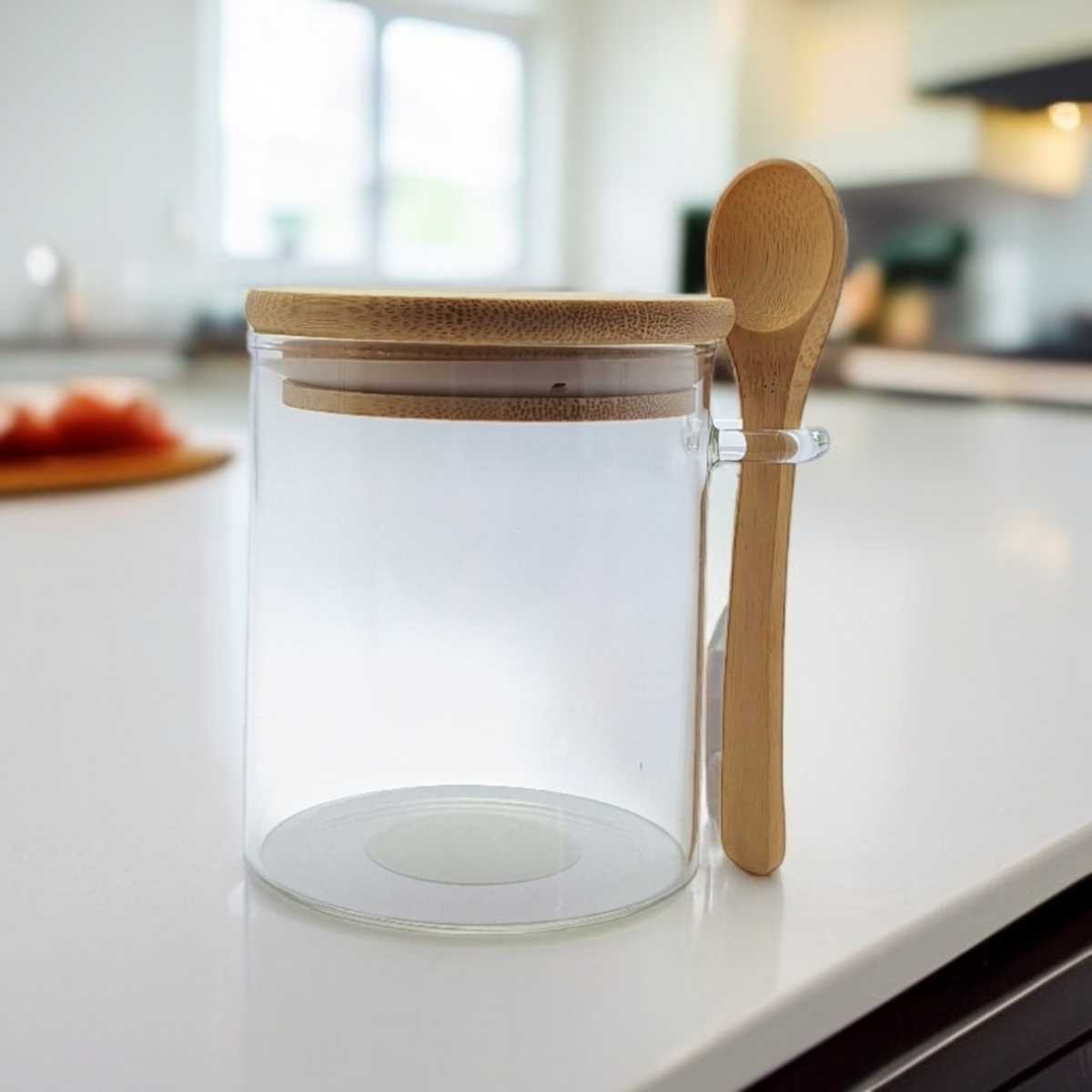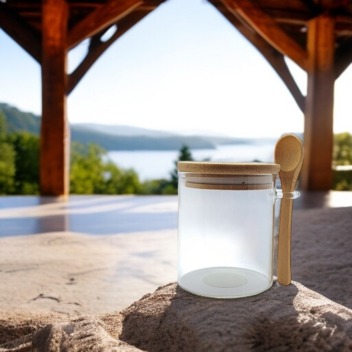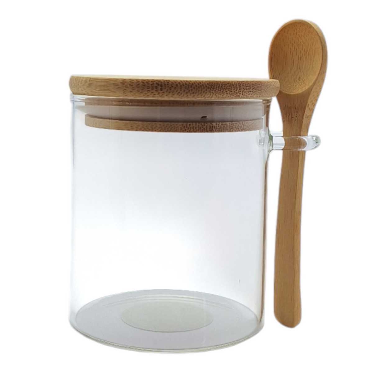 SZKLANY POJEMNIK 400 ml SŁOICZEK Z BAMBUSOWĄ POKRYWKĄ I ŁYŻECZKĄ