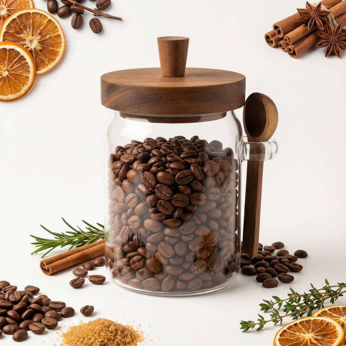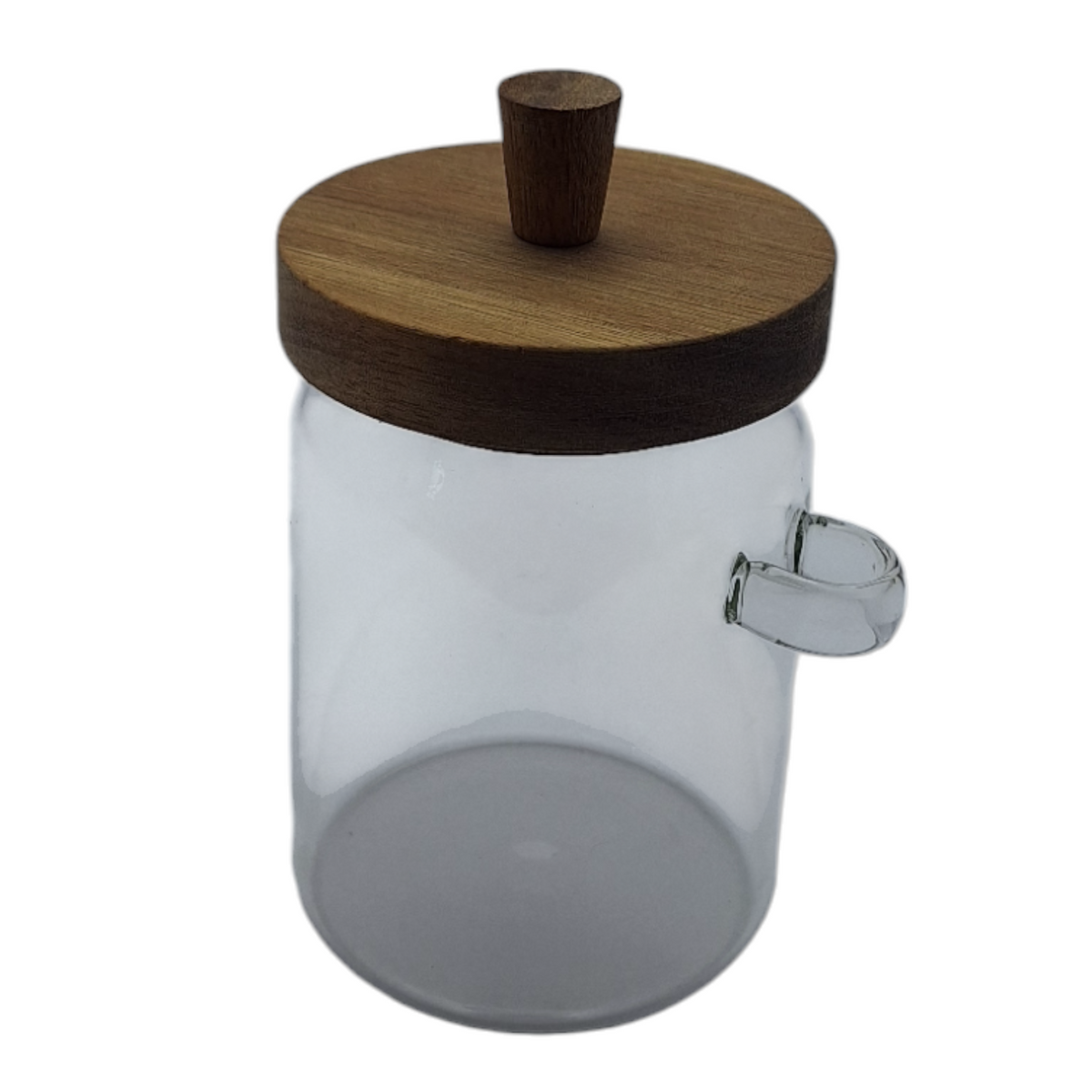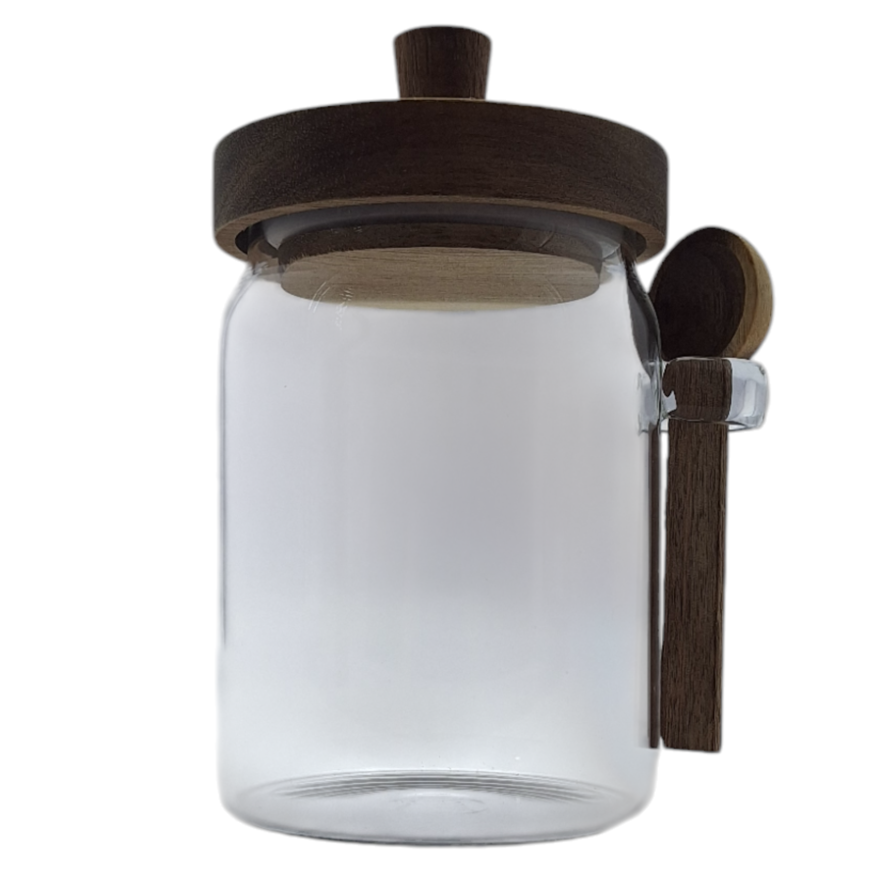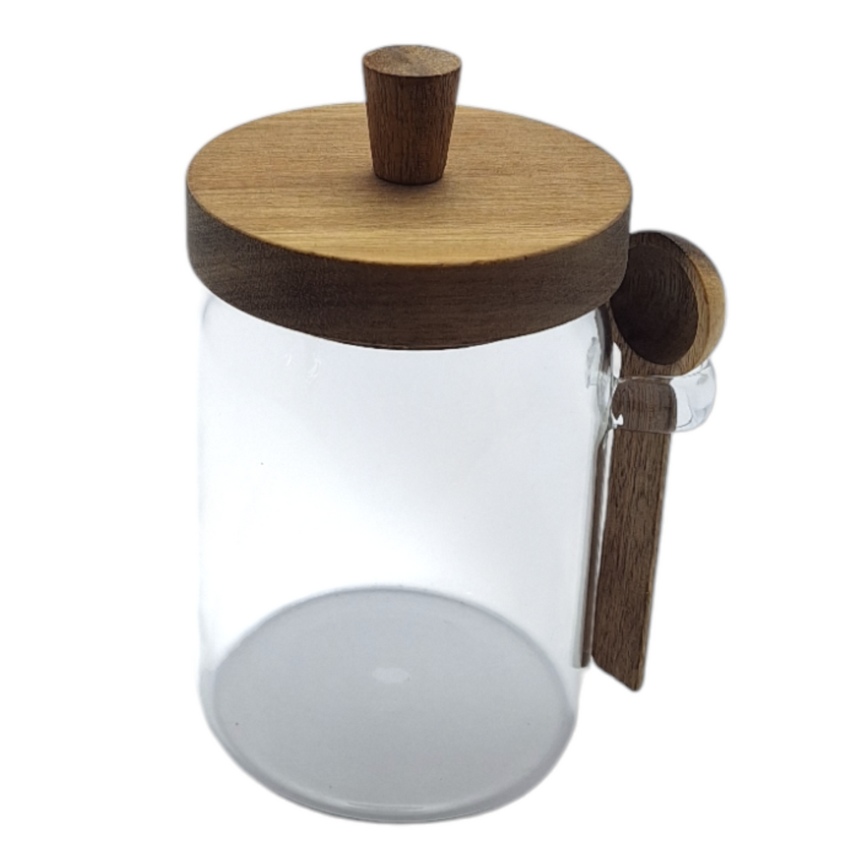POJEMNIK SZKLANY 550 ml SŁOICZEK Z BAMBUSOWĄ POKRYWKĄ I ŁYŻECZKĄ