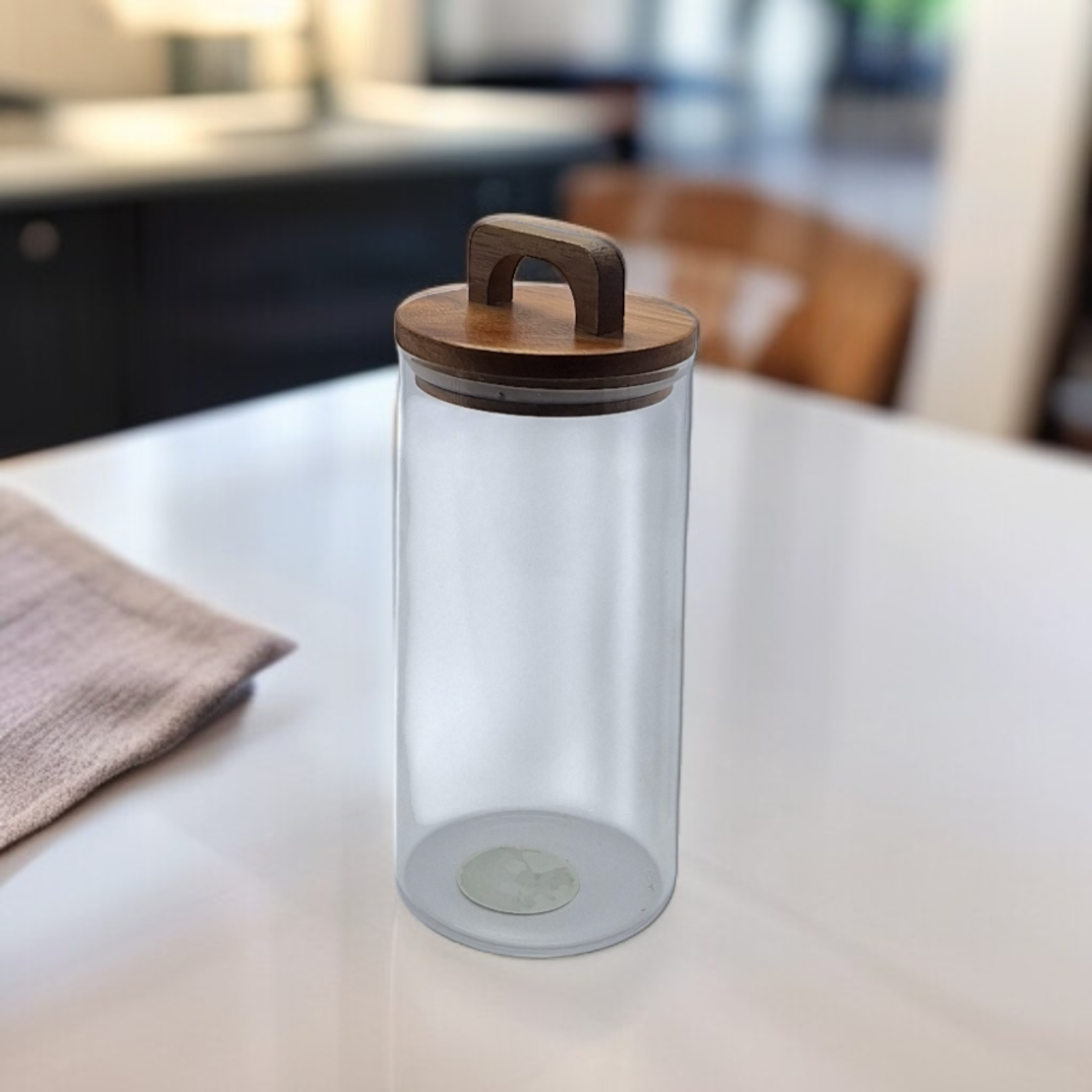 SZKLANY POJEMNIK 1000 ml SŁOICZEK Z BAMBUSOWĄ POKRYWKĄ