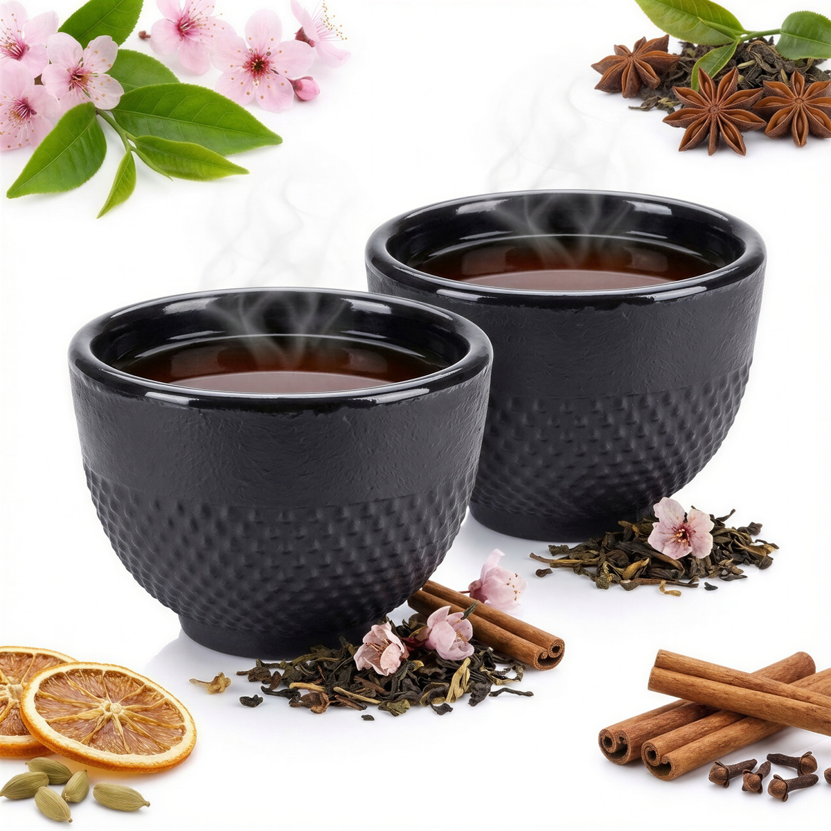 CZARKI ŻELIWNE 2 SZT ZESTAW ŻELIWNY DO HERBATY
