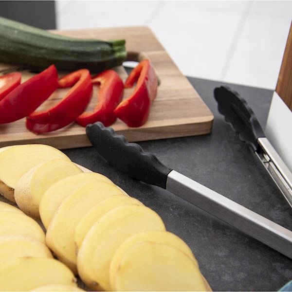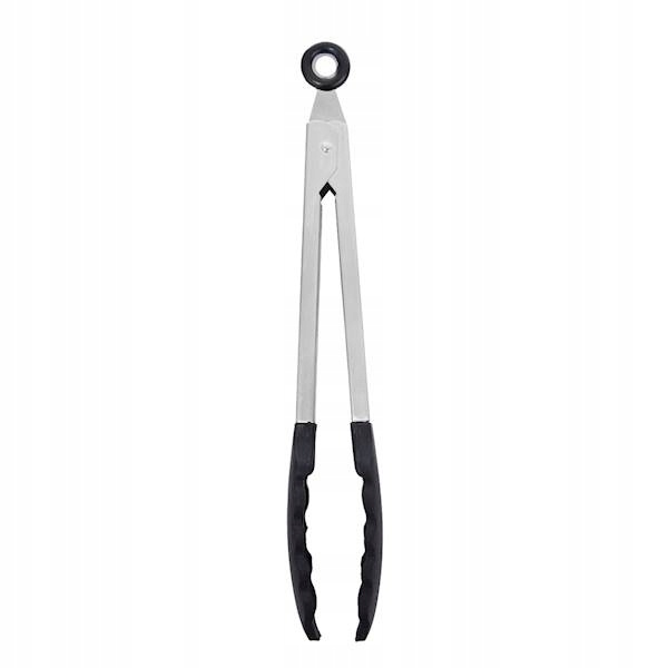 Szczypce silikonowe do przewracania mięsa na grillu, warzyw czy innych potraw. Sprawdzą się również podczas podawania posiłków. Możliwość zablokowania gdy są złożone oraz powieszenia.