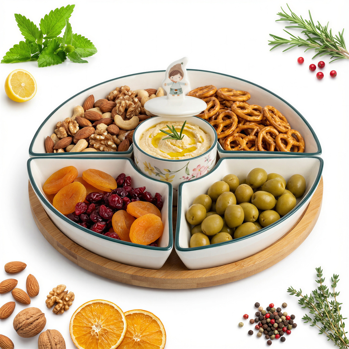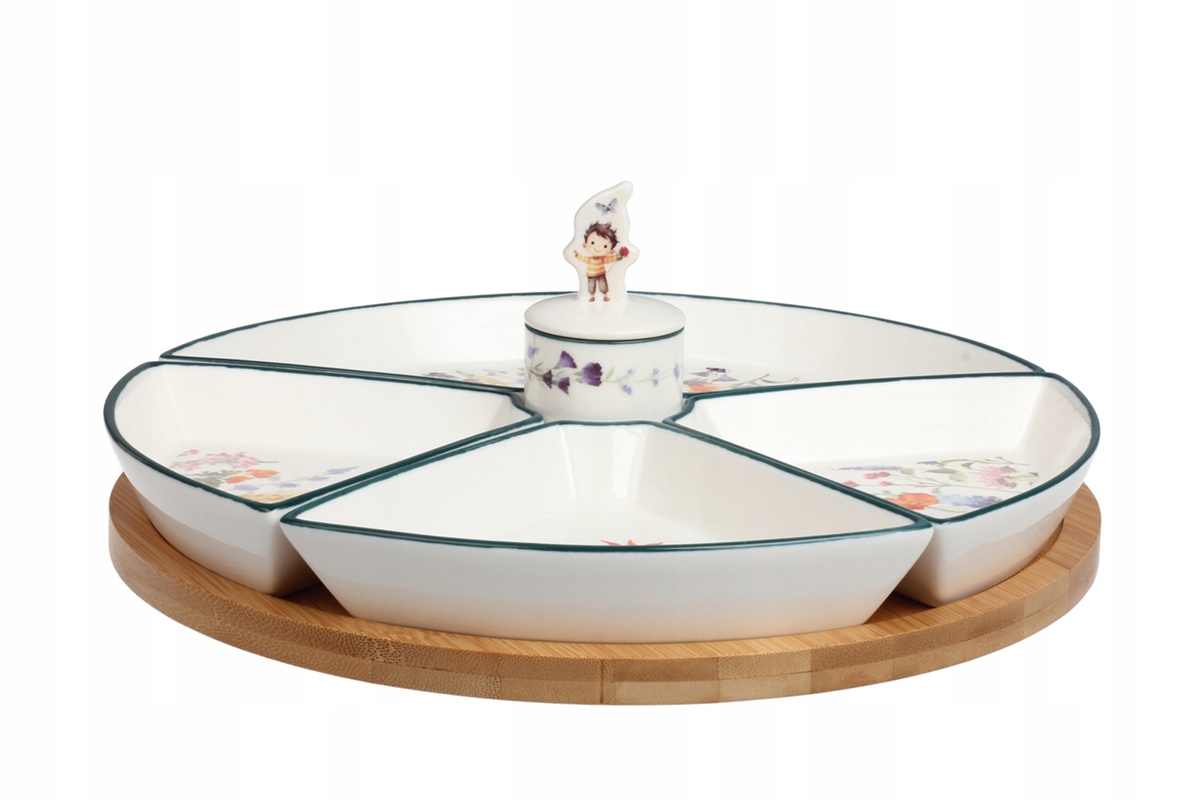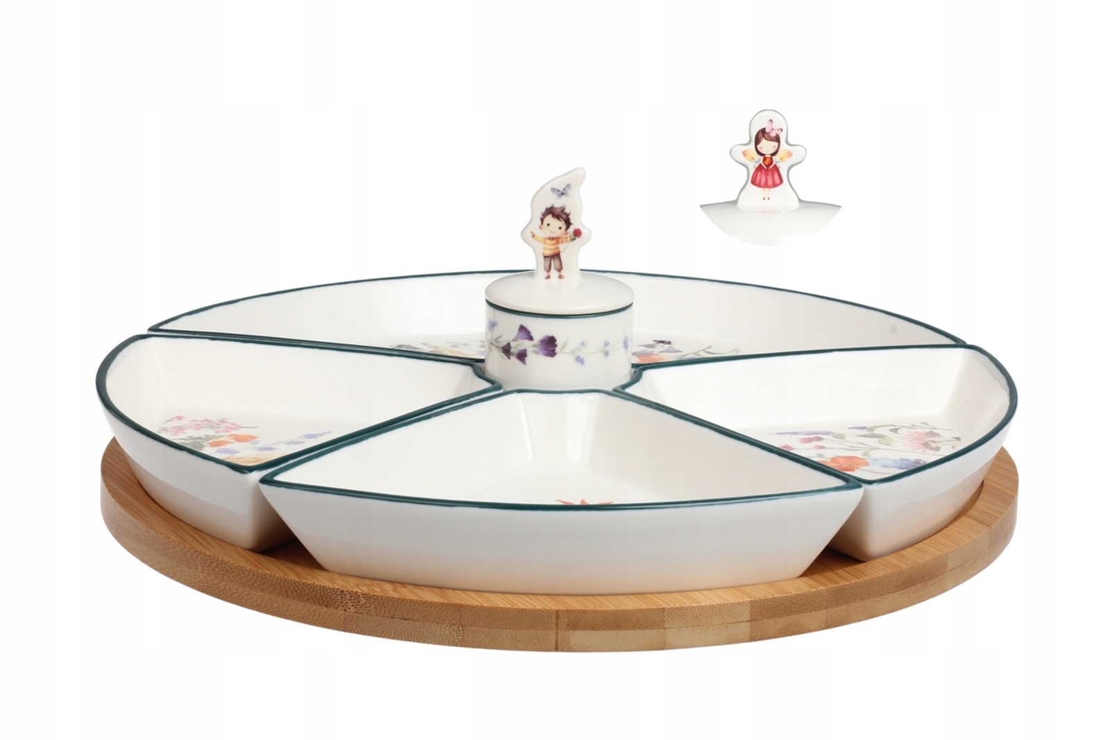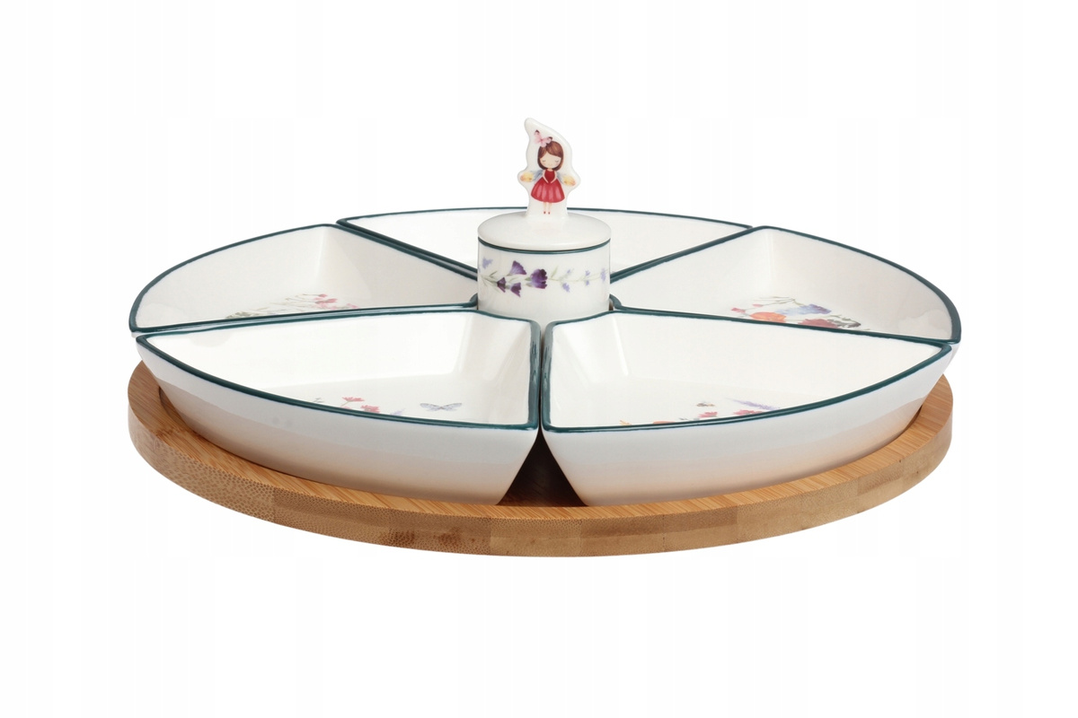PATERA ceramiczna OBROTOWA na bambusie 27,5 cm PAN KWIATEK 7 elementów