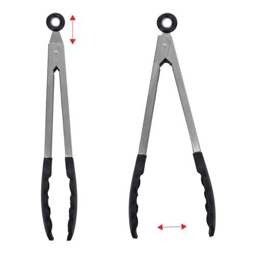 Szczypce silikonowe do przewracania mięsa na grillu, warzyw czy innych potraw. Sprawdzą się również podczas podawania posiłków. Możliwość zablokowania gdy są złożone oraz powieszenia.
