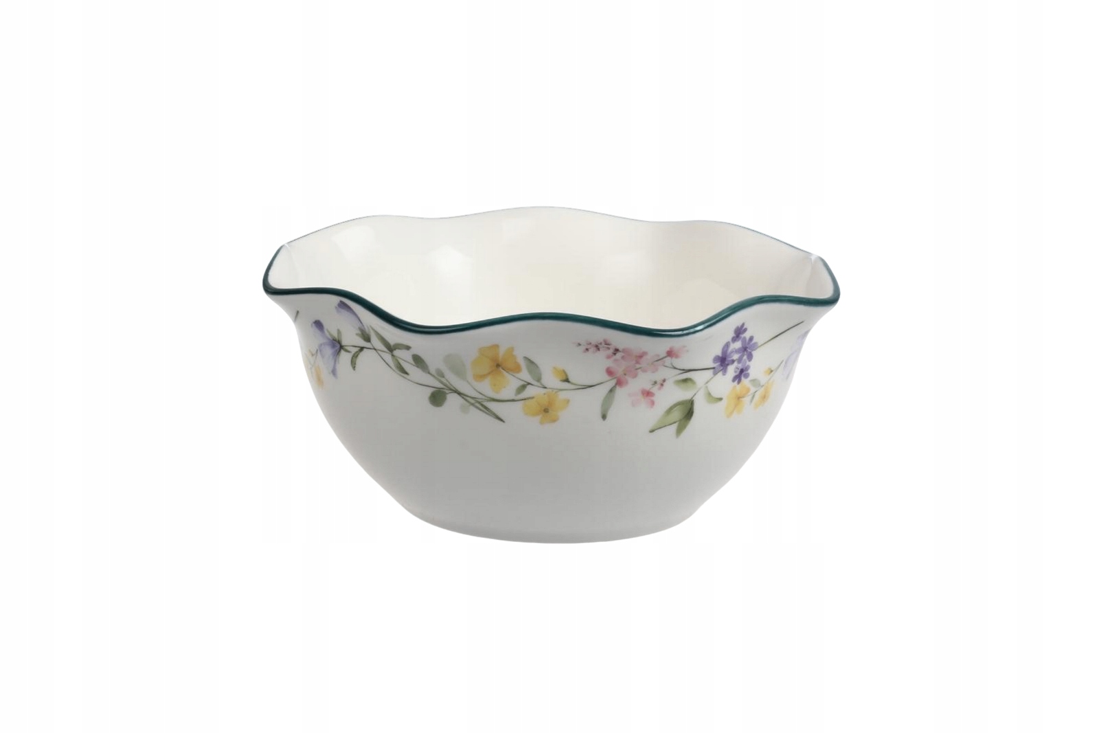 Delikatny, kwiatowy wzór ożywi Twoje dni i wprowadzi do nich odrobinę wiosennej radości. Falowane brzegi miski i subtelna, zielona lamówka dodają jej elegancji i uroku.