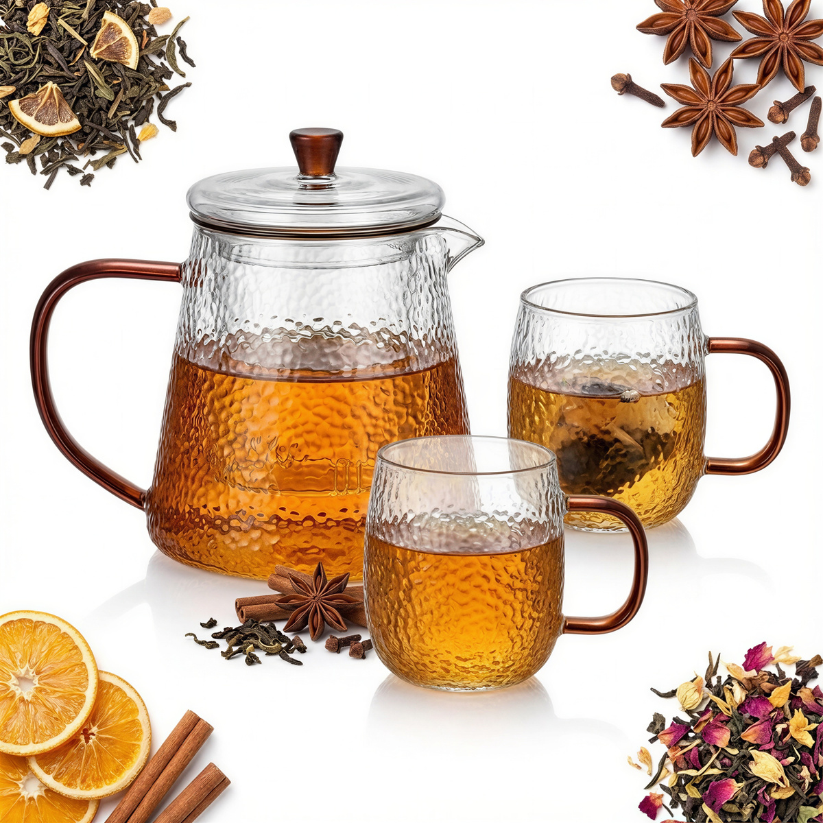 Wykonany ze szkła borokrzemowego, które jest odporne na wysoką temperaturę. Zaletą szkła borokrzemowego jest większa odporność na różnego rodzaju zadrapania i uszkodzenia niż w przypadku tradycyjnego szkła. Dzbanek posiada szklaną pokrywę i zaparzacz. Świetnie sprawdzi się o każdej porze roku.
