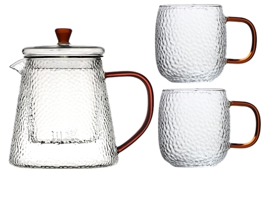 Żaroodporny szklany ZESTAW JACK zaparzacz + 2 szklanki BURSZTYN