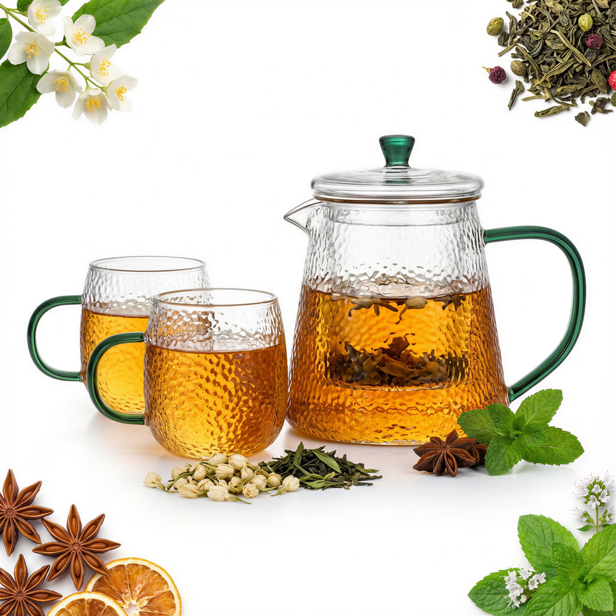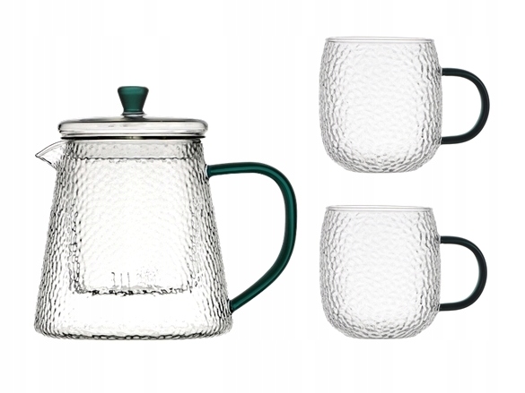 SZKLANY BOROSILIKATOWY ZESTAW ZAPARZACZA + 2 SZKLANEK JACK ZIELONE UCHO