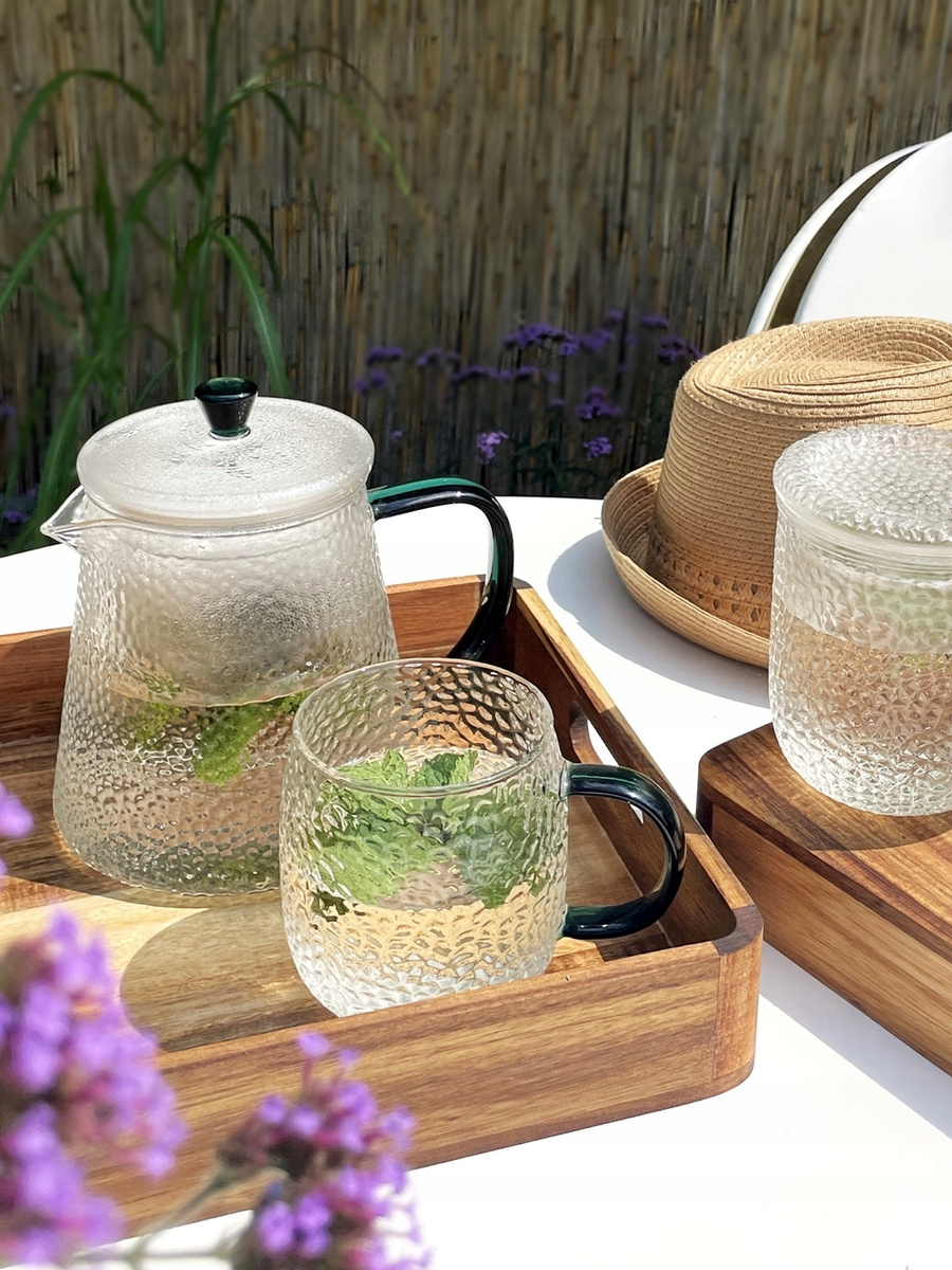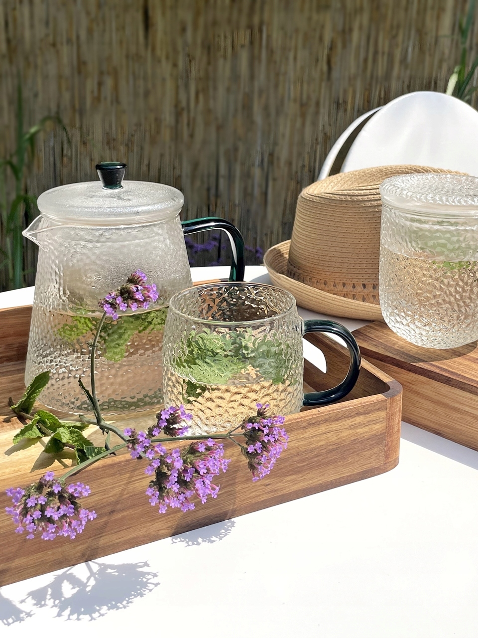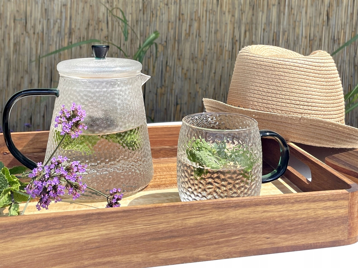 Wykonany ze szkła borokrzemowego, które jest odporne na wysoką temperaturę. Zaletą szkła borokrzemowego jest większa odporność na różnego rodzaju zadrapania i uszkodzenia niż w przypadku tradycyjnego szkła. Dzbanek posiada szklaną pokrywę i zaparzacz. Świetnie sprawdzi się o każdej porze roku.