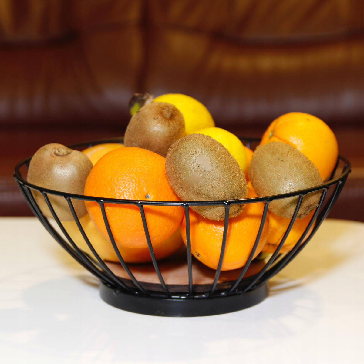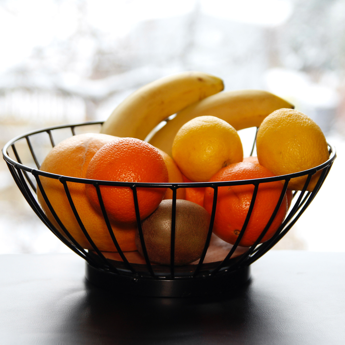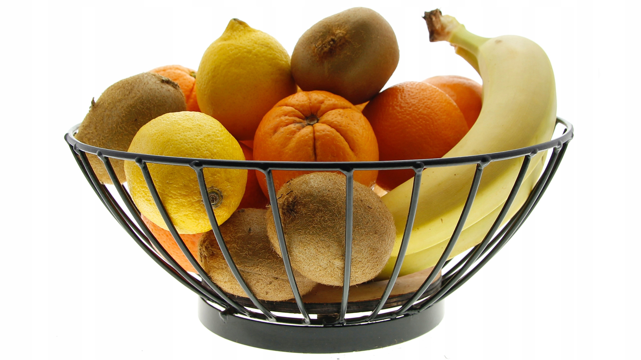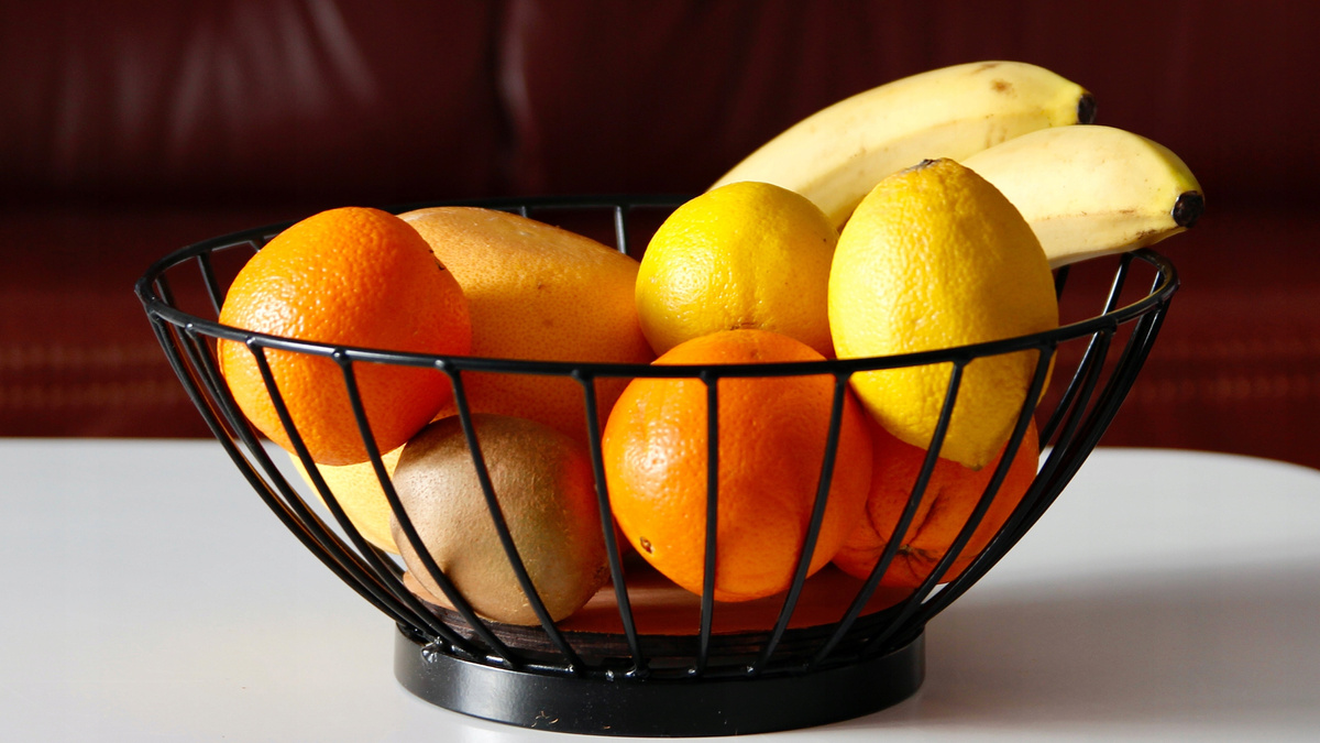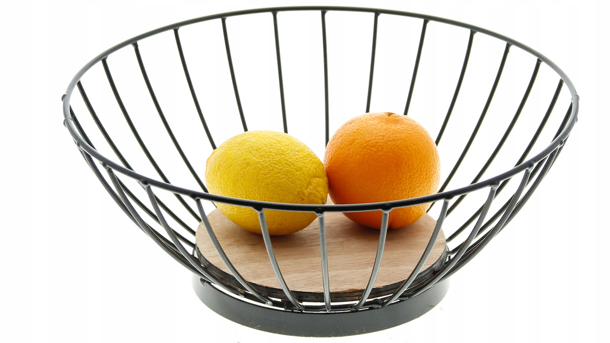 Klasyczny koszyk, w którym owoce nie tylko pięknie się prezentują, ale też nie ulegają tak łatwo zepsuciu, ponieważ dzięki otwartym ściankom mają zapewnioną cyrkulację powietrza.