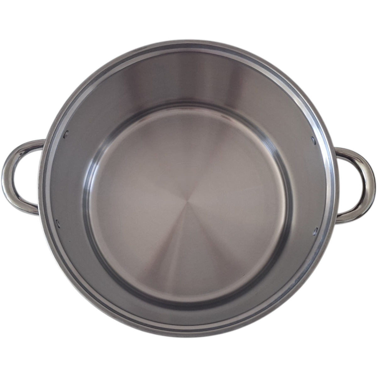 Garnek o średnicy 28 cm to solidne naczynie wykonane z wysokiej jakości stali nierdzewnej, zaprojektowane z myślą o intensywnym użytkowaniu zarówno w kuchniach profesjonalnych, jak i domowych.
