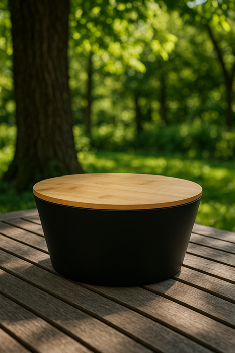 Ta elegancka miska z czarnego tworzywa sztucznego z pokrywą z naturalnego bambusa to doskonałe połączenie estetyki i funkcjonalności. Idealna do przechowywania sałatek, owoców, warzyw, pieczywa czy przekąsek – w domu, na pikniku lub w pracy.