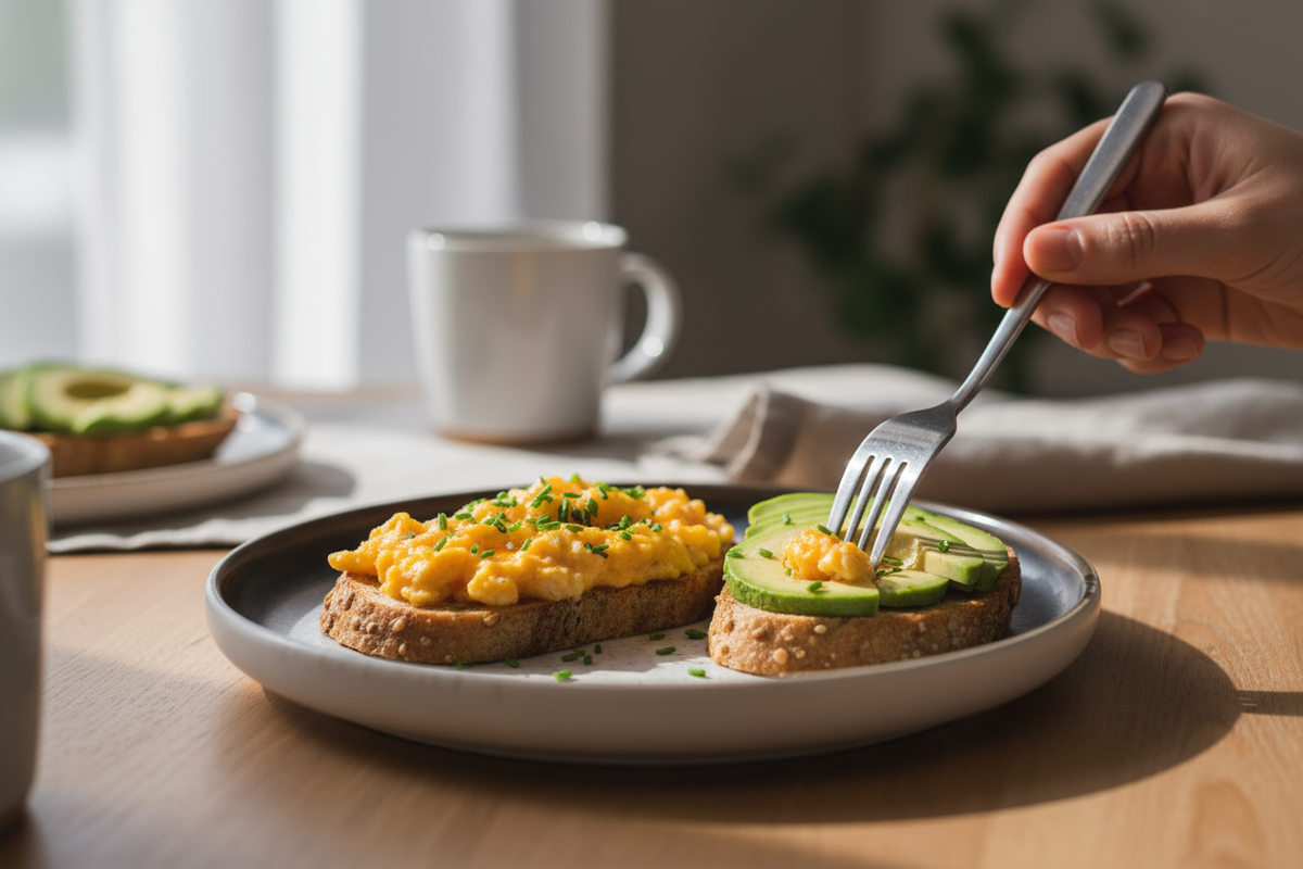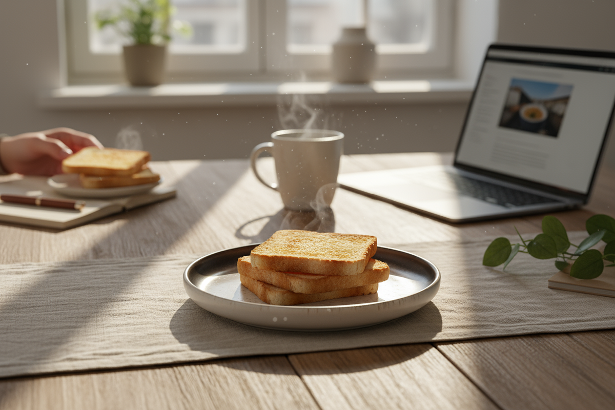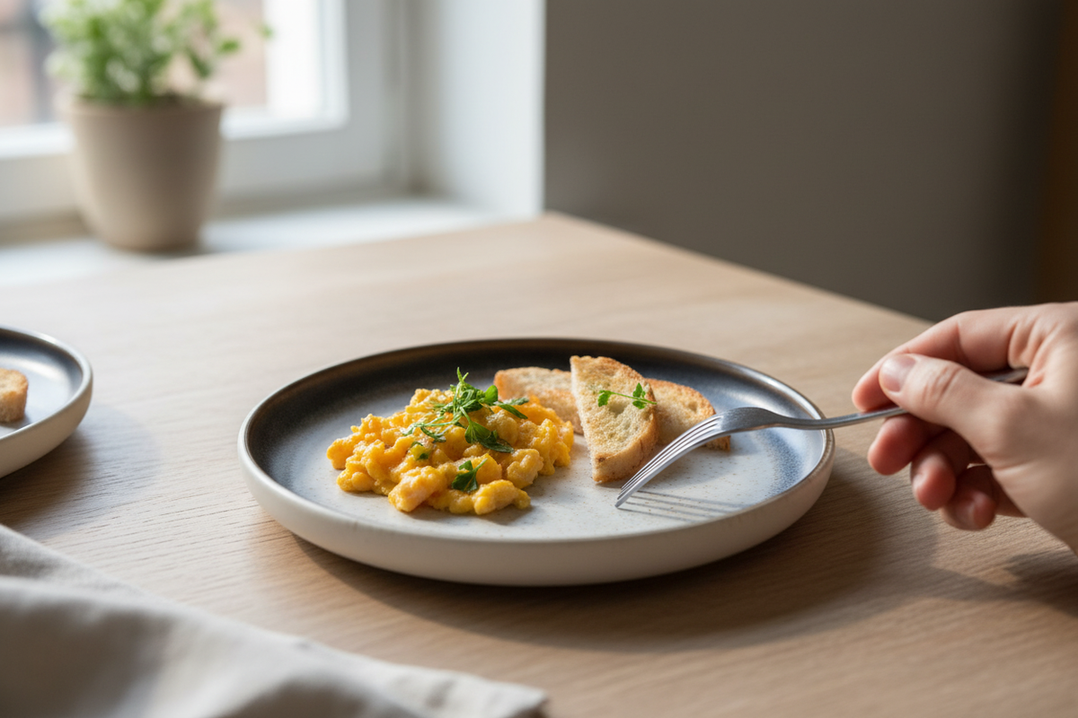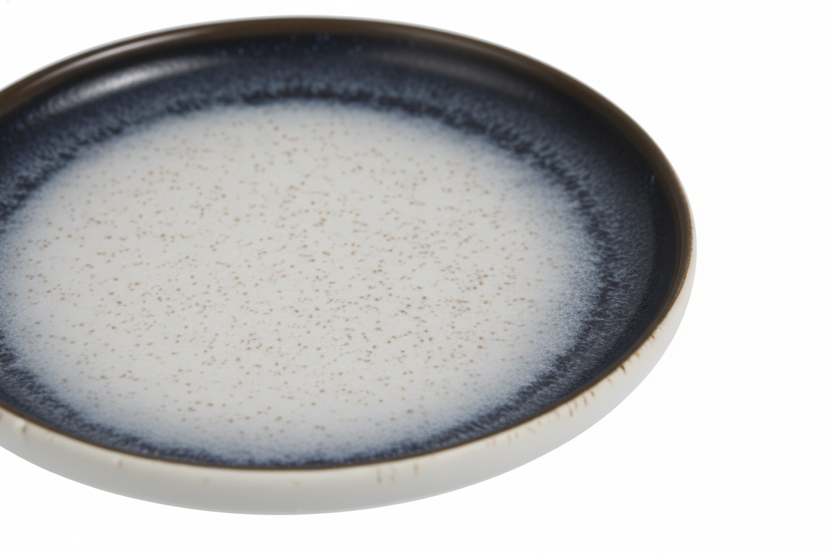 Na talerzu lądują świeże owoce, chrupiące pieczywo i kremowy jogurt, a każdy z tych elementów wydaje się jeszcze bardziej apetyczny w towarzystwie ceramiki o subtelnych kształtach. Szkliwienie talerza odbija światło, tworząc grę kolorów, która zachęca do delektowania się każdym kęsem.