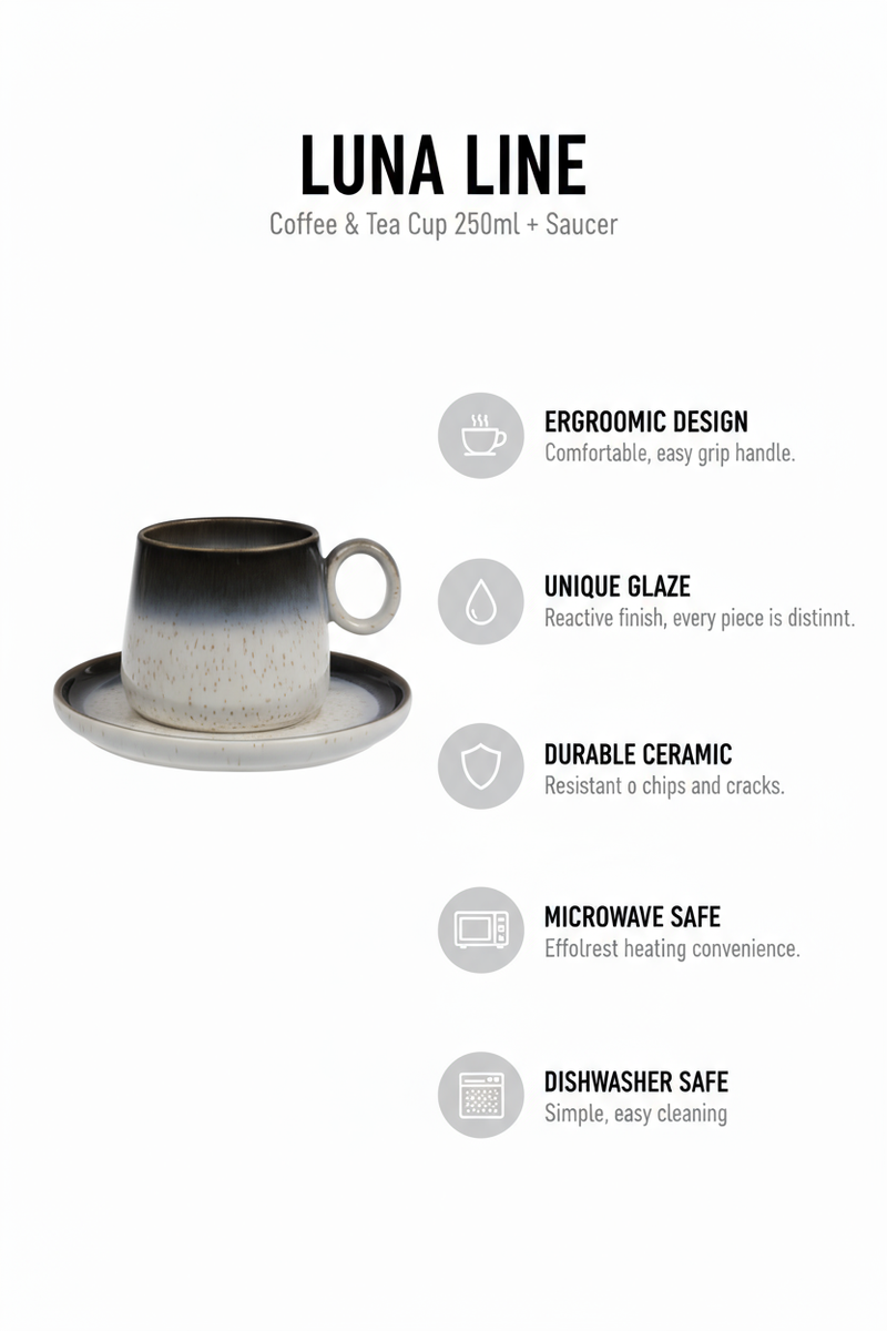 Odkryj elegancję i styl w każdej filiżance z kolekcji LUNA LINE! Ta ceramiczna filiżanka o pojemności 250 ml to idealny wybór dla miłośników kawy i herbaty, którzy cenią sobie nie tylko smak, ale i estetykę serwowania napojów. Zanurz się w chwilach relaksu z filiżanką, która doda uroku każdemu spotkaniu przy herbacie czy kawie.