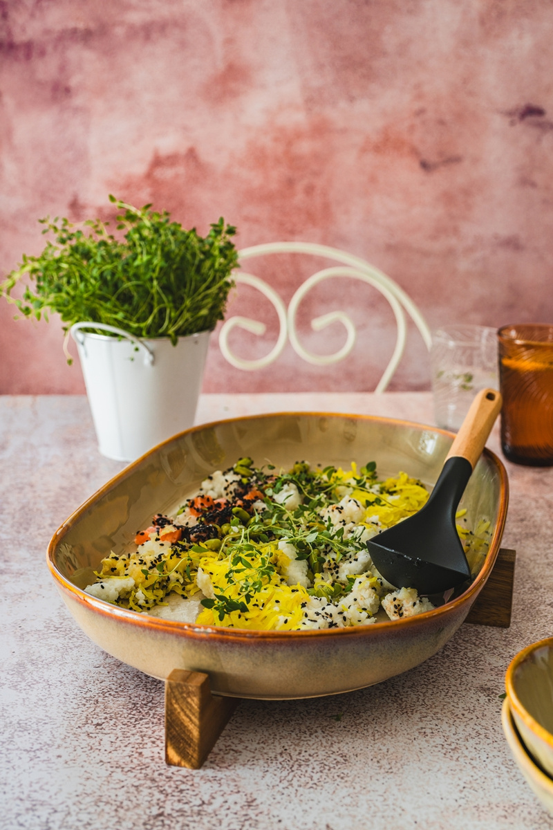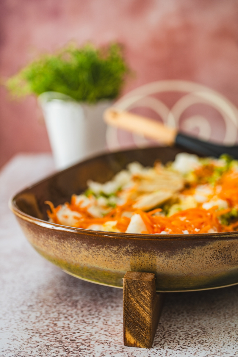 2. Użyj miski do serwowania potraw, takich jak sałatki, przekąski czy dania główne.