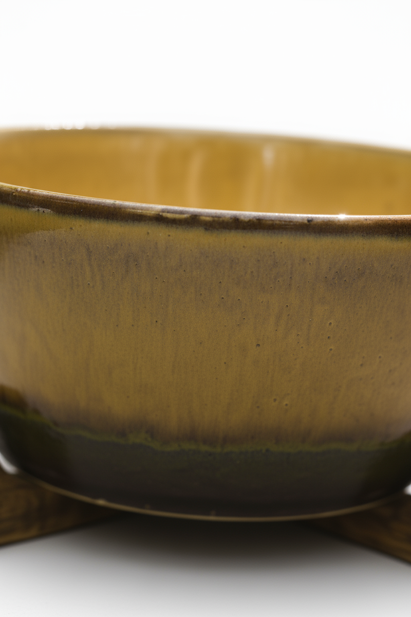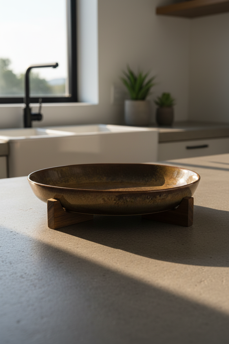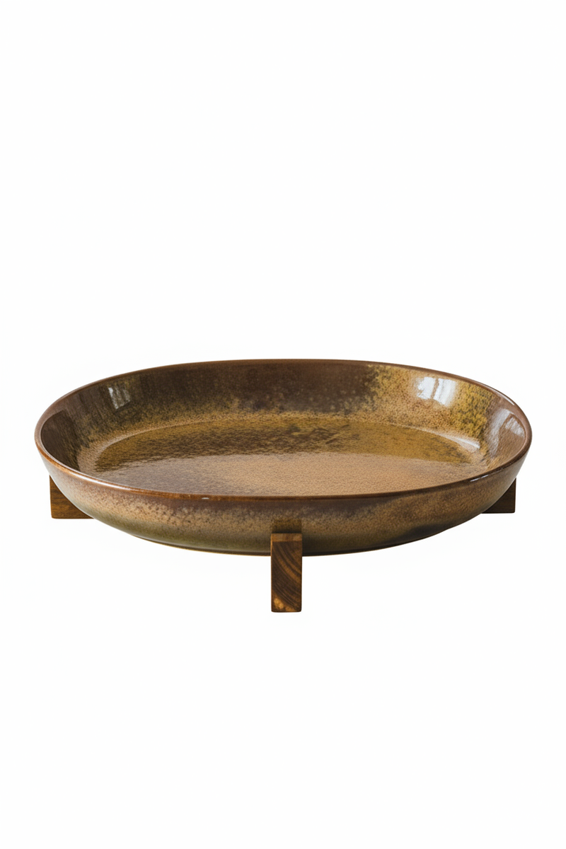 PÓLMISEK PATERA  Z DREWNIANĄ POSTAWKĄ CERAMIKA DUŻY UNIKALNY WYGLĄD