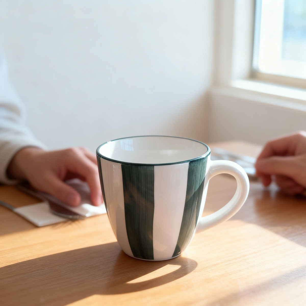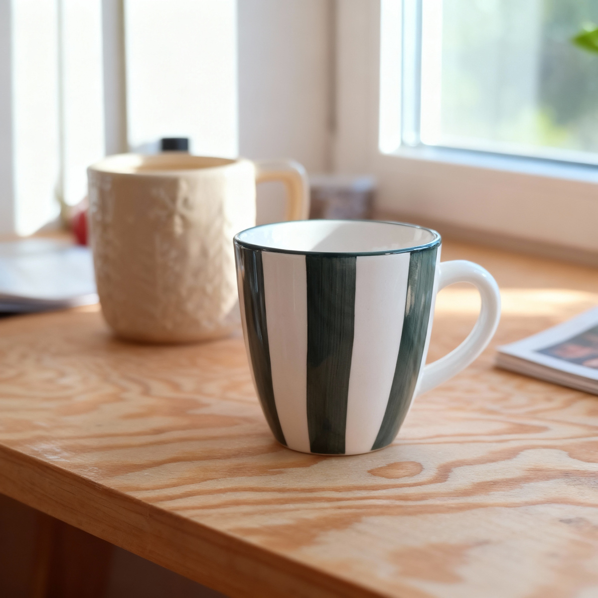 KUBEK 350ML W ZIELONO-BIAŁE PASKI ✨