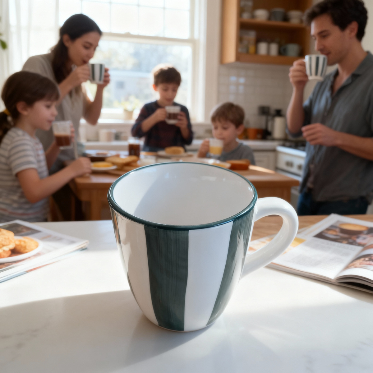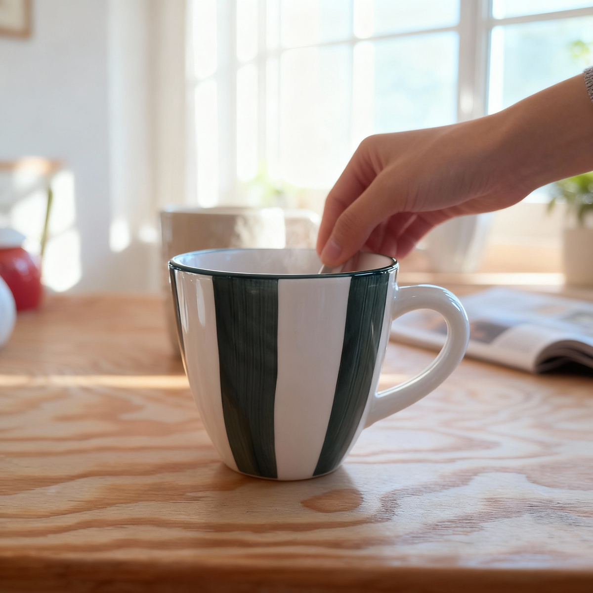 Odkryj magię serwowania z tym wyjątkowym kubkiem! ⚡ Nasz zielony kubek o pojemności 350 ML, wykonany z najwyższej jakości ceramiki, to idealny wybór na wszelkie okazje, szczególnie w świątecznym klimacie. Jego urokliwe zielono-białe paski dodają charakteru i sprawiają, że każdy napój smakuje lepiej. Co więcej, jest kompatybilny ze zmywarką, co ułatwia codzienną pielęgnację. Nie czekaj dłużej, spraw, aby Twoje serwowanie stało się niezapomniane! ❤️
