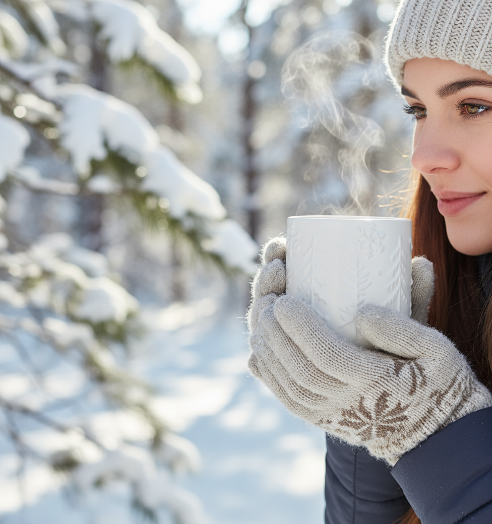 KUBEK 300 ML ZIMOWY ŚWIĄTECZNY DECO, BEŻ DO GORĄCYCH NAPOJÓW ZMYWARKA