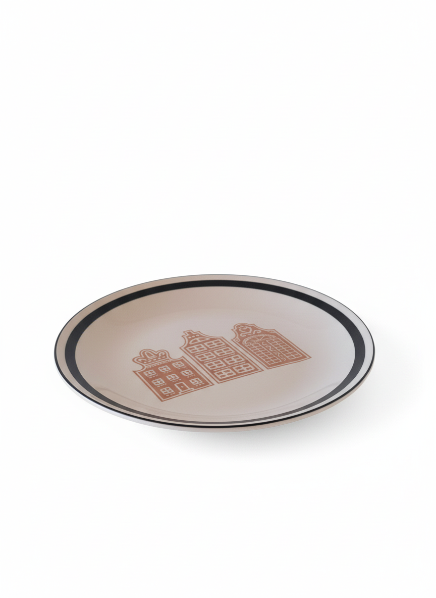 GINGERHOUSE TALERZ OBIADOWY Z CZARNĄ KRAWĘDZIĄ I WZOREM Ø26,5 CM ⚡