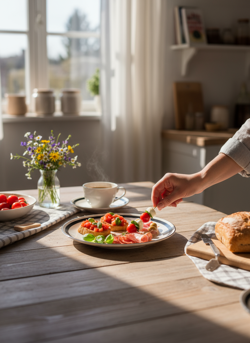 • Krok 1 — umieść talerz na stole w celu serwowania potraw.