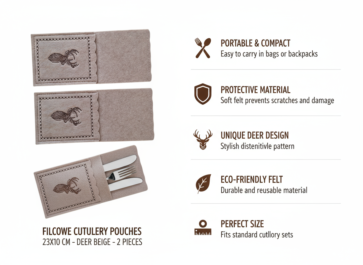 FILCOWE ETUI NA SZTUĆCE 23X10 CM JELEŃ BEŻOWA 2 SZT. ✨