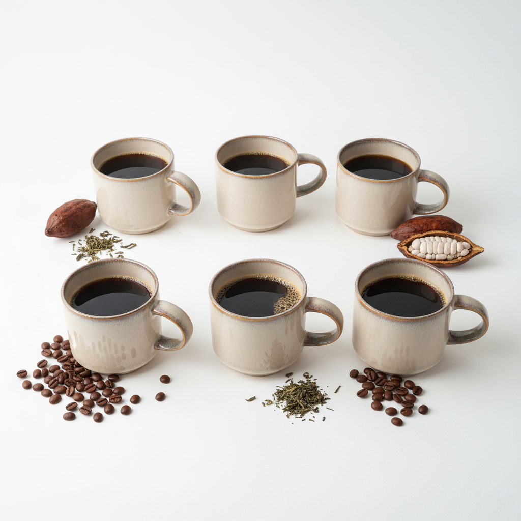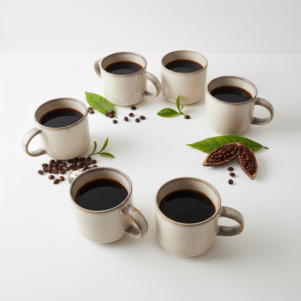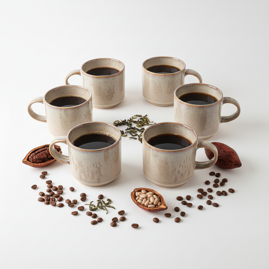 Zestaw 6 kubków do kawy, idealny do serwowania ulubionych napojów.